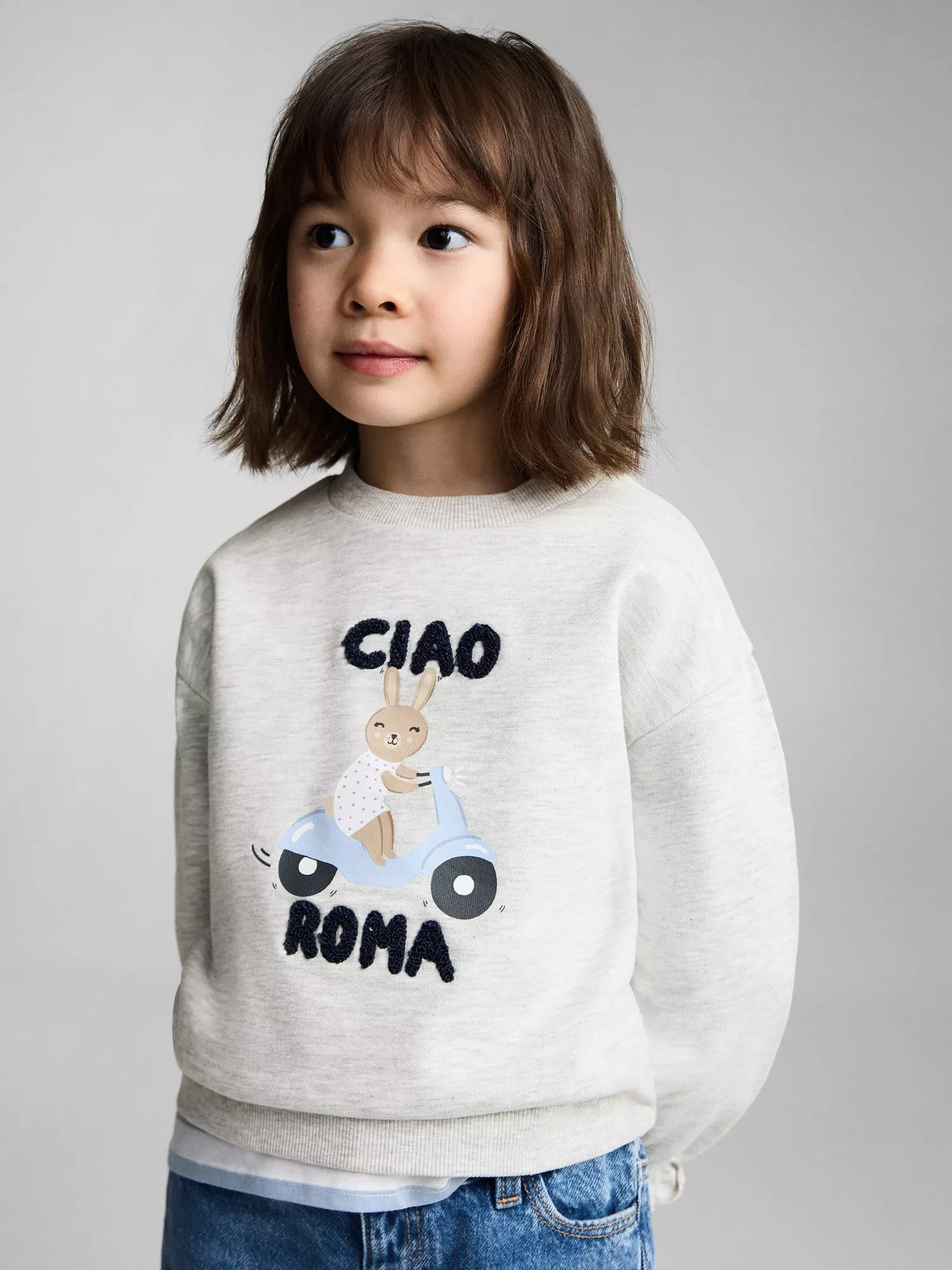 MangoKids' Ciao Roma Sweatshirt, Pastel Grey