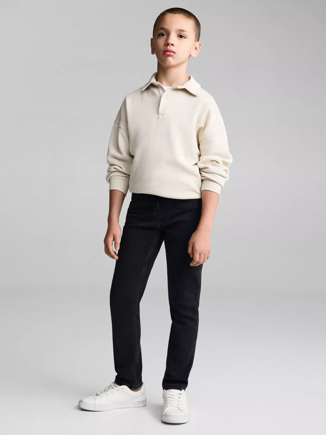 Made from a super soft, yet durable cotton blend with an elasticated drawstring waist, these jeans are free from print so they can mix and match with the rest of their wardrobe.