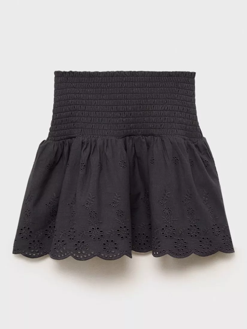 Made from 100% cotton with eyelet embroidery, this skirt from Mango features a shirred gathered waist.