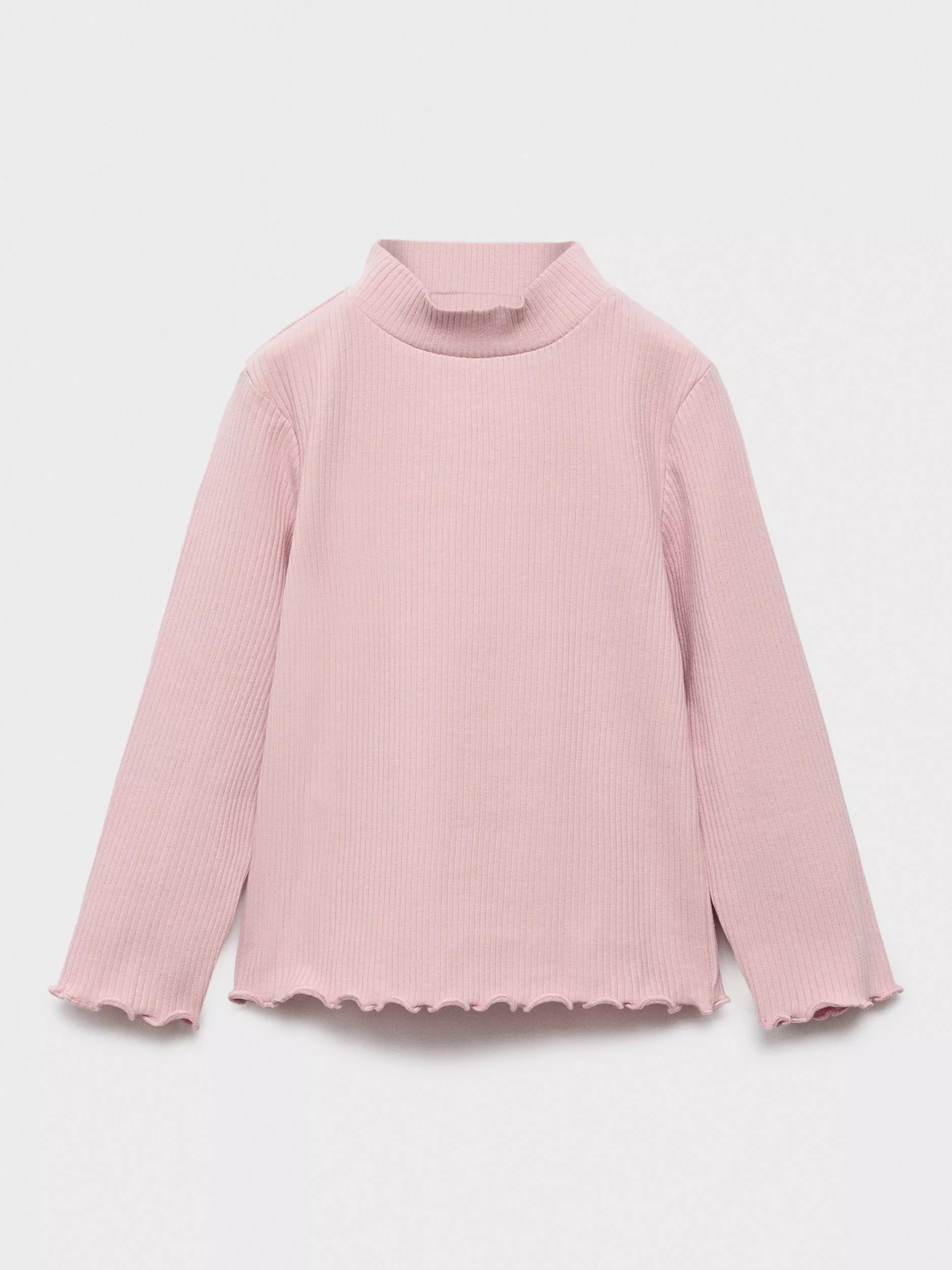 Crafted from a cotton-rich blend, this everyday long-sleeve top features a high neck and lettuce-edge frill trims on the cuffs and hem.