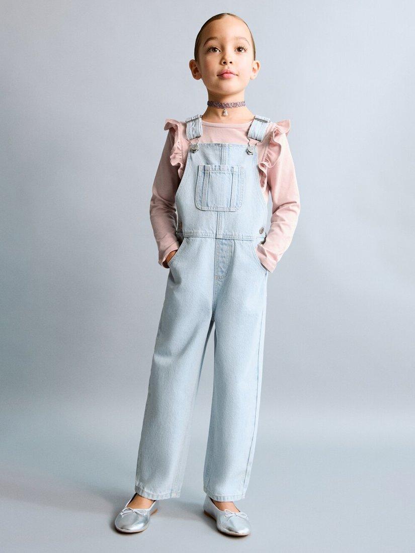 MangoKids' Cotton Dungarees, Light Blue