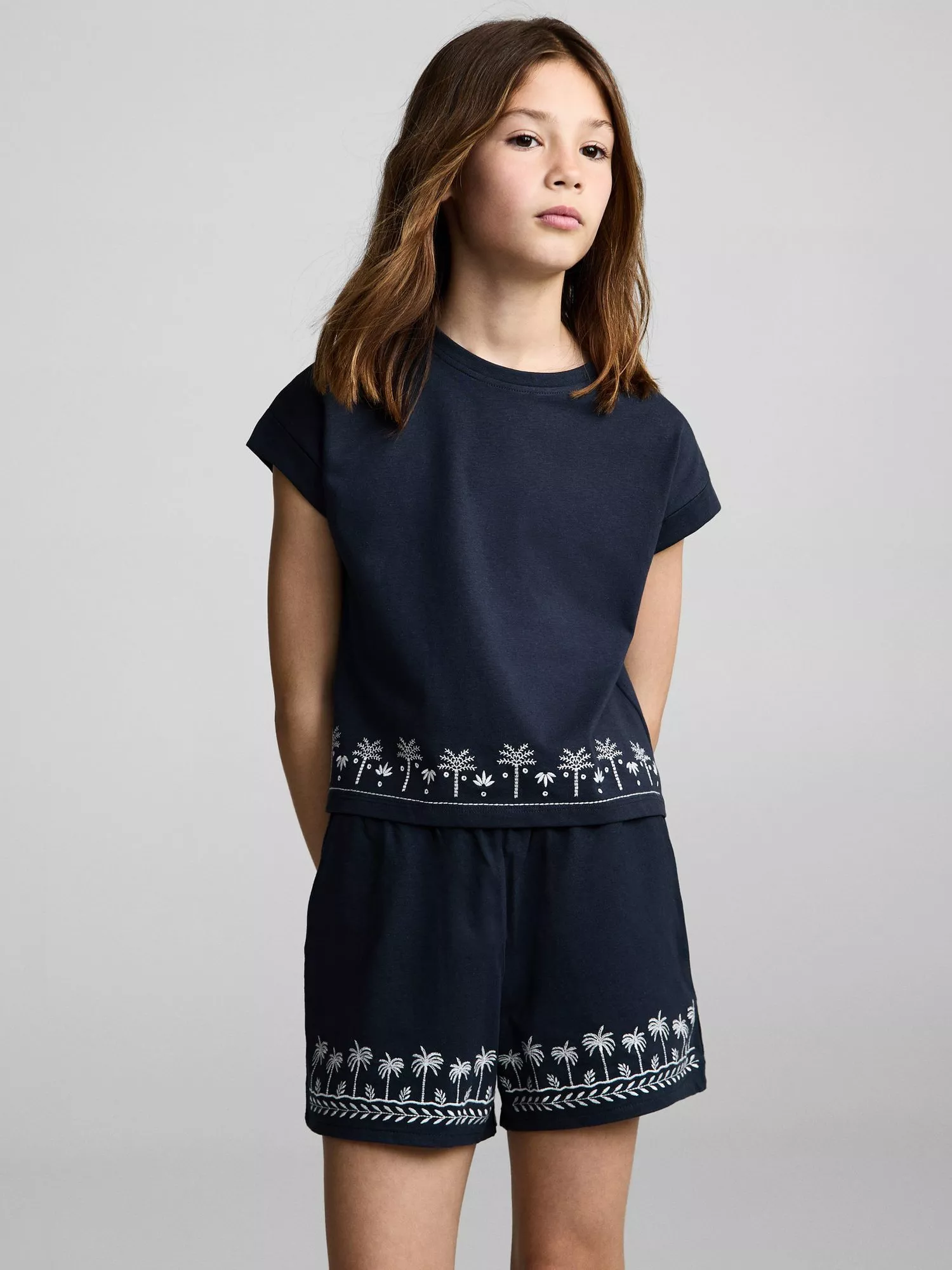 MangoKids' Cotton Embroidered Palm Tree Shorts, Navy