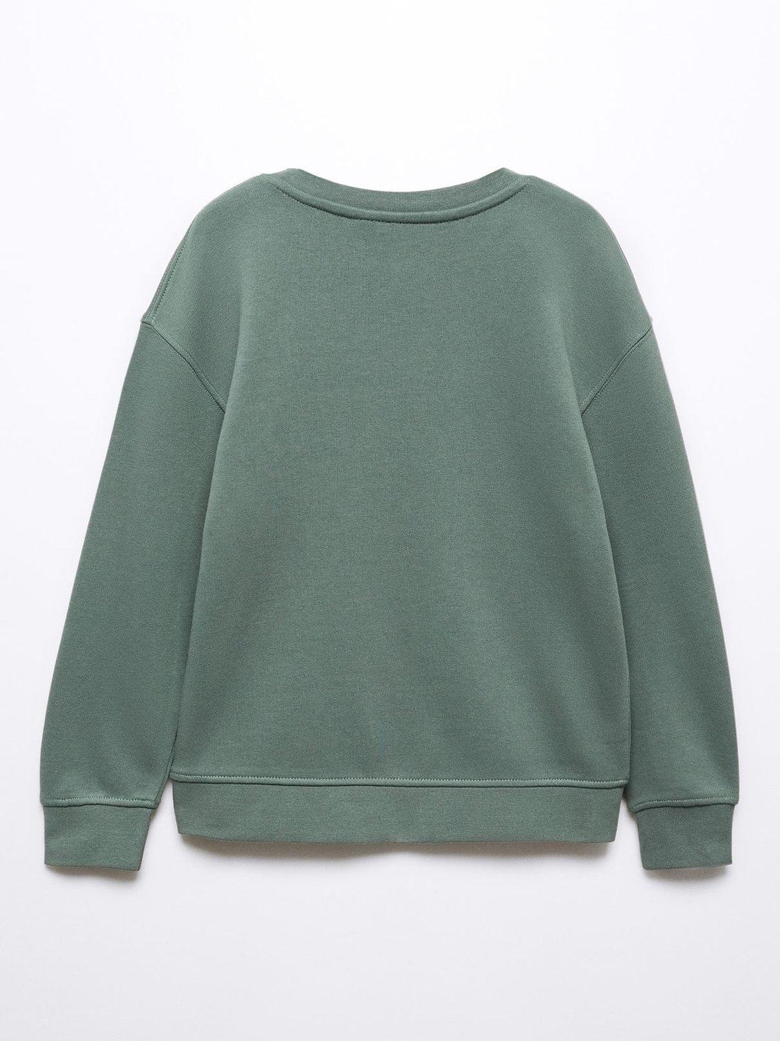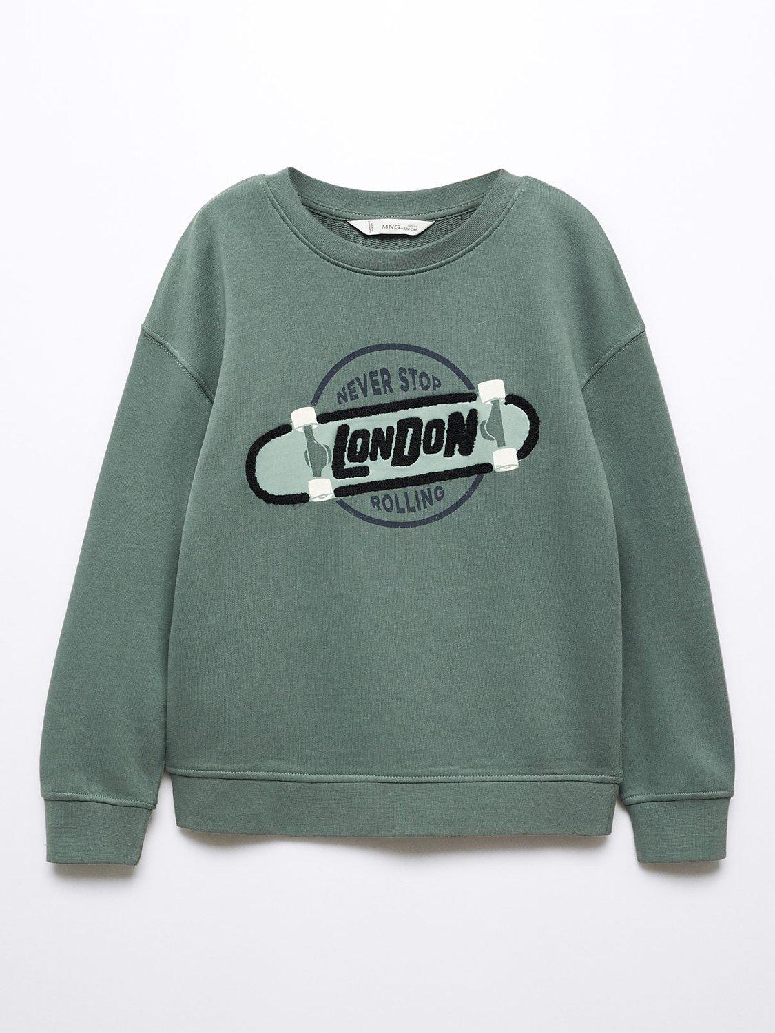 MangoKids' Cotton London Slogan Sweatshirt, Dark Green