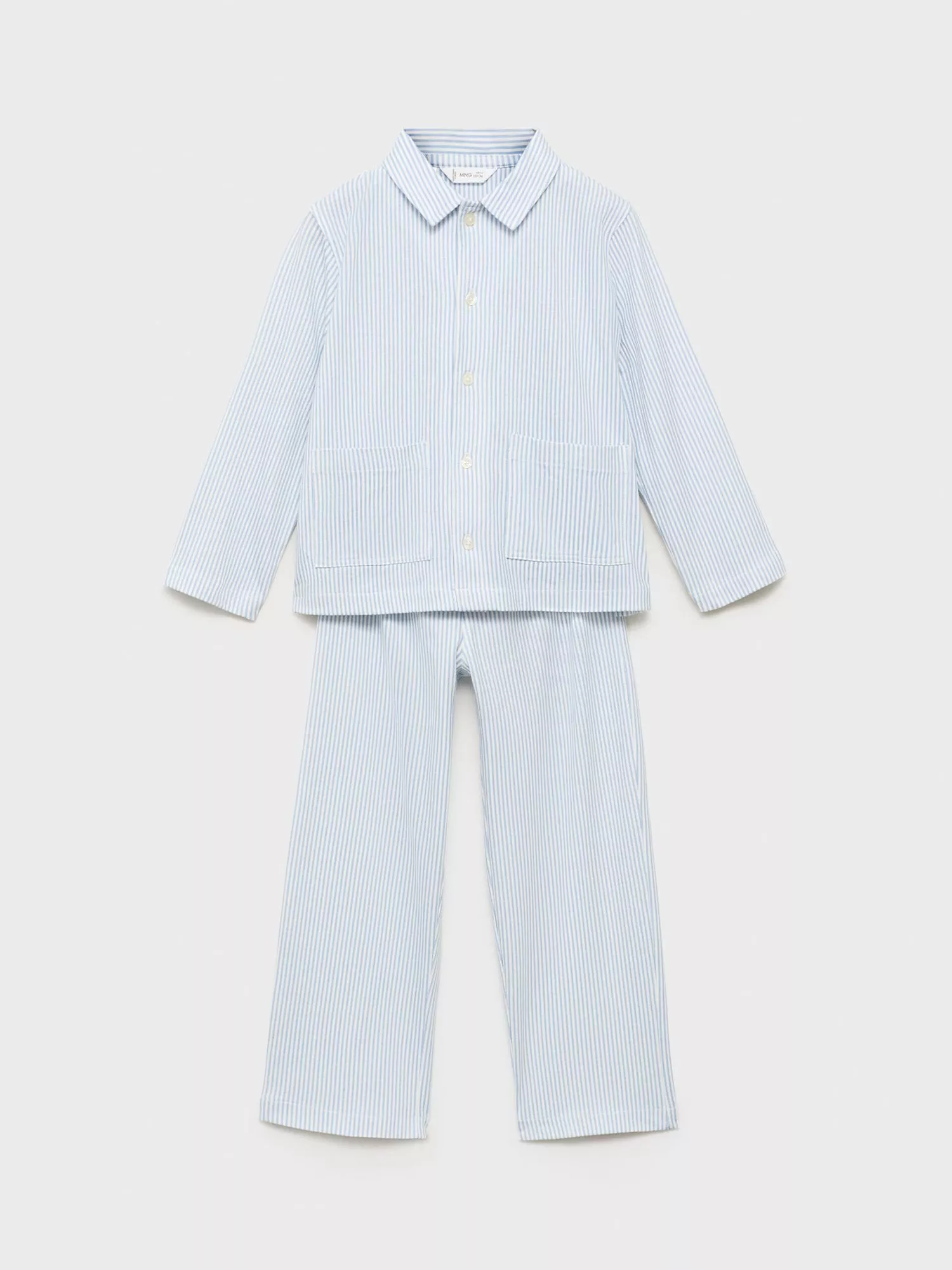 MangoKids' Cotton Long Sleeved Pyjamas, Light Blue