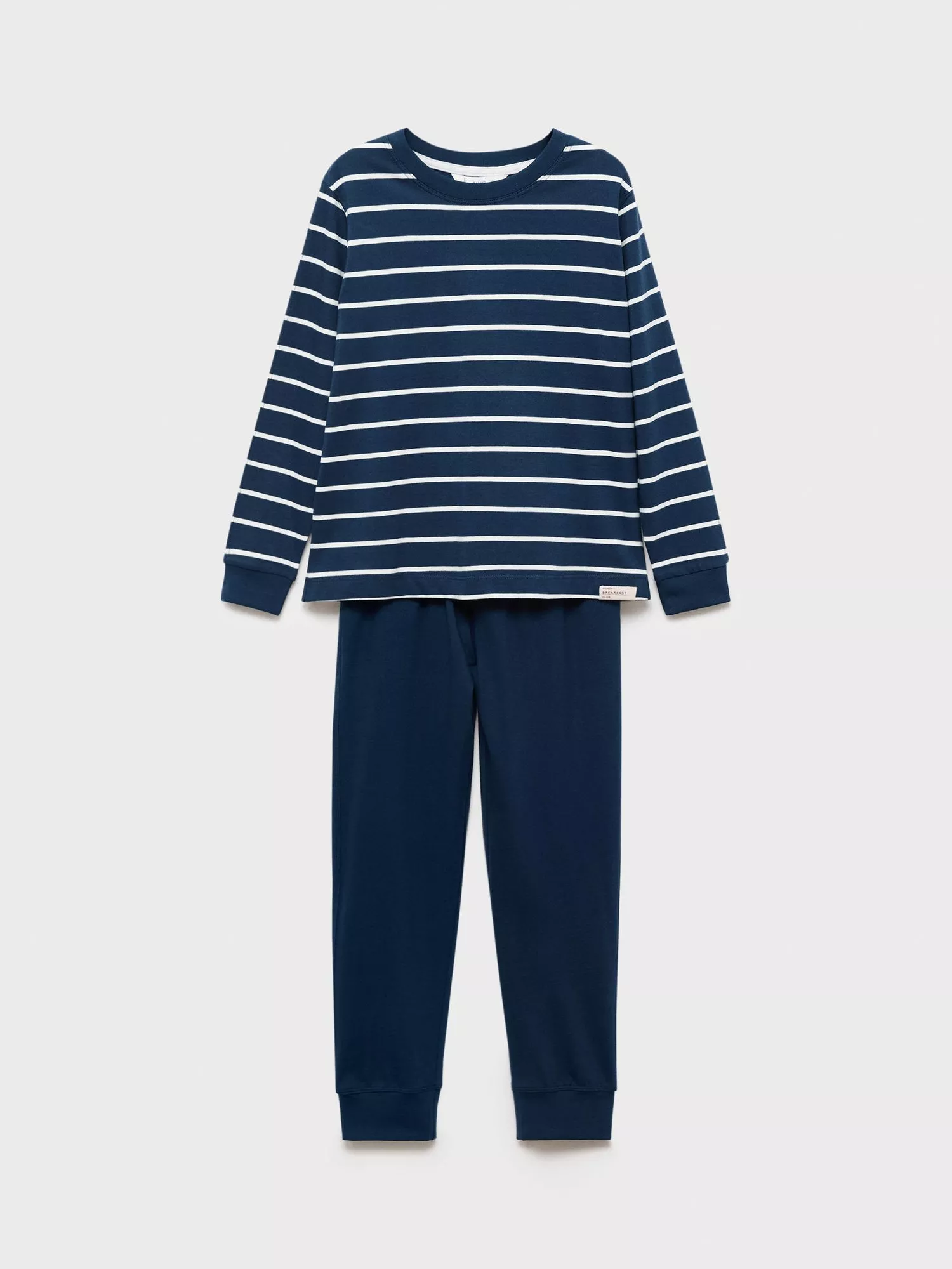 MangoKids' Cotton Long Sleeved Striped Pyjamas, Navy