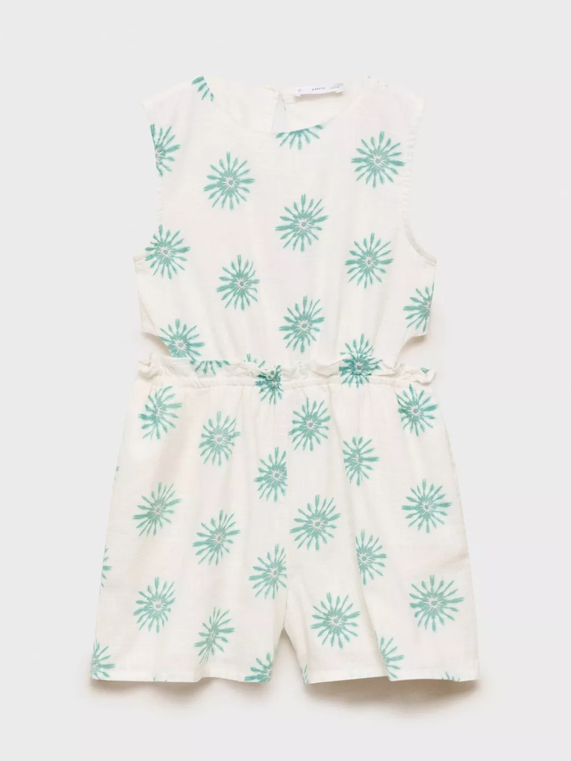 Printed, 100% cotton playsuit cut in a sleeveless design with side slits, button fastenings and cotton lining.