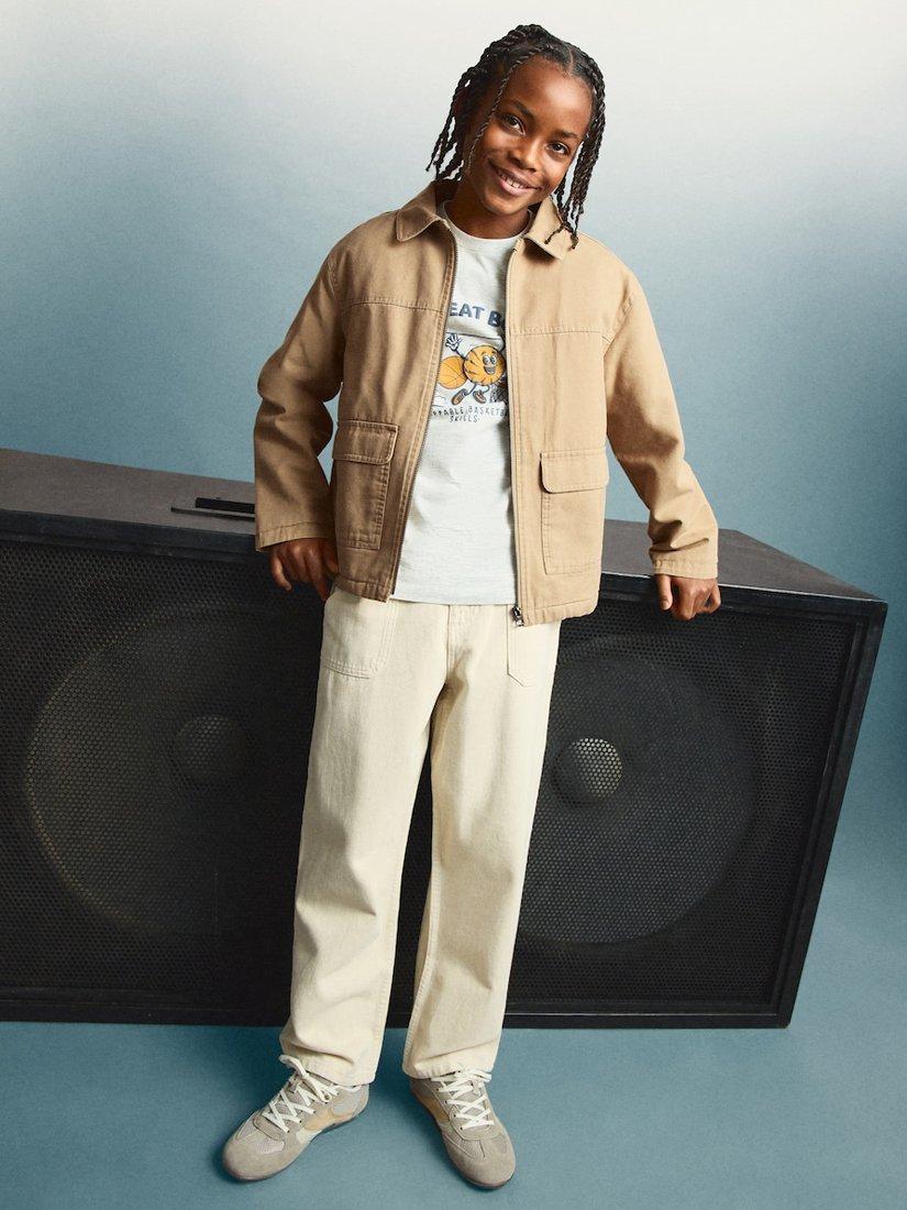 This cotton utility jacket is made for everyday adventures, keeping them comfortable and ready for play with a practical design inspired by modern city style.