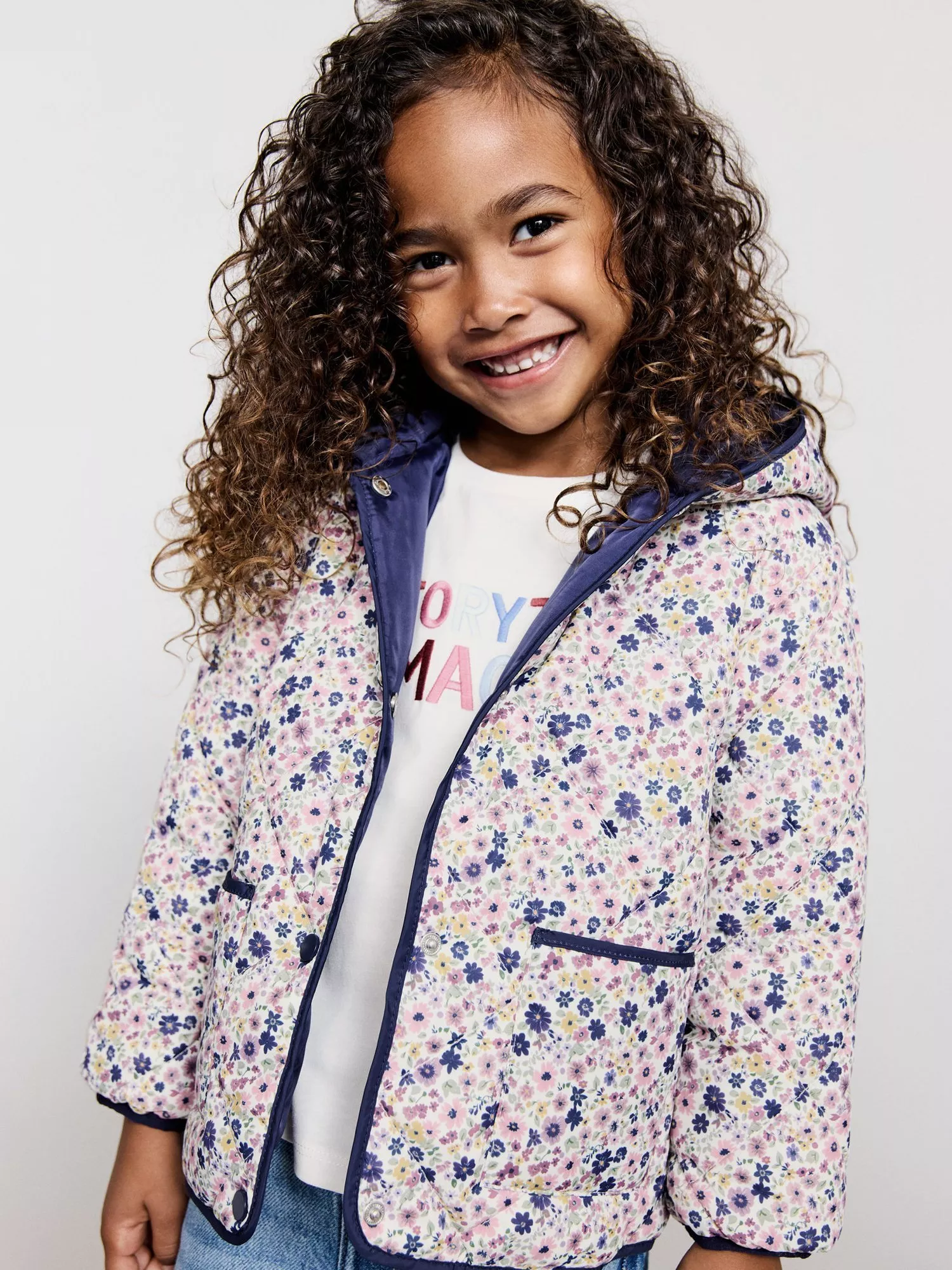 This waterproof quilted jacket keeps them warm and comfortable on busy days, with a floral pattern and long sleeves for added style and coverage.