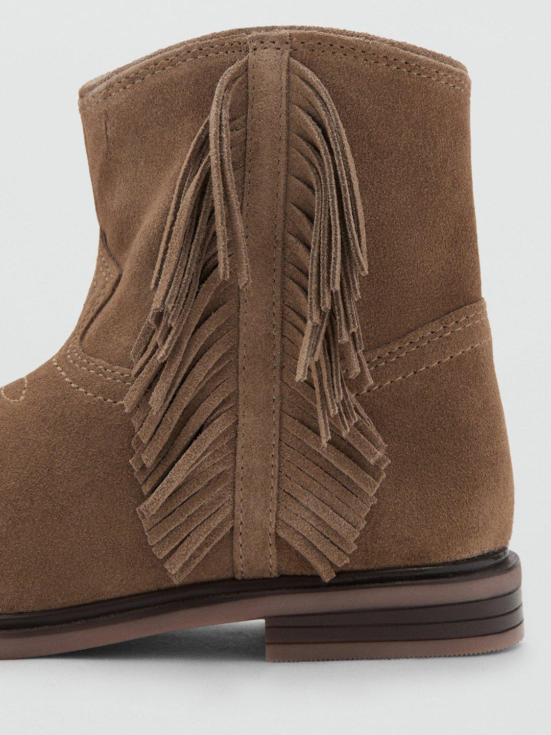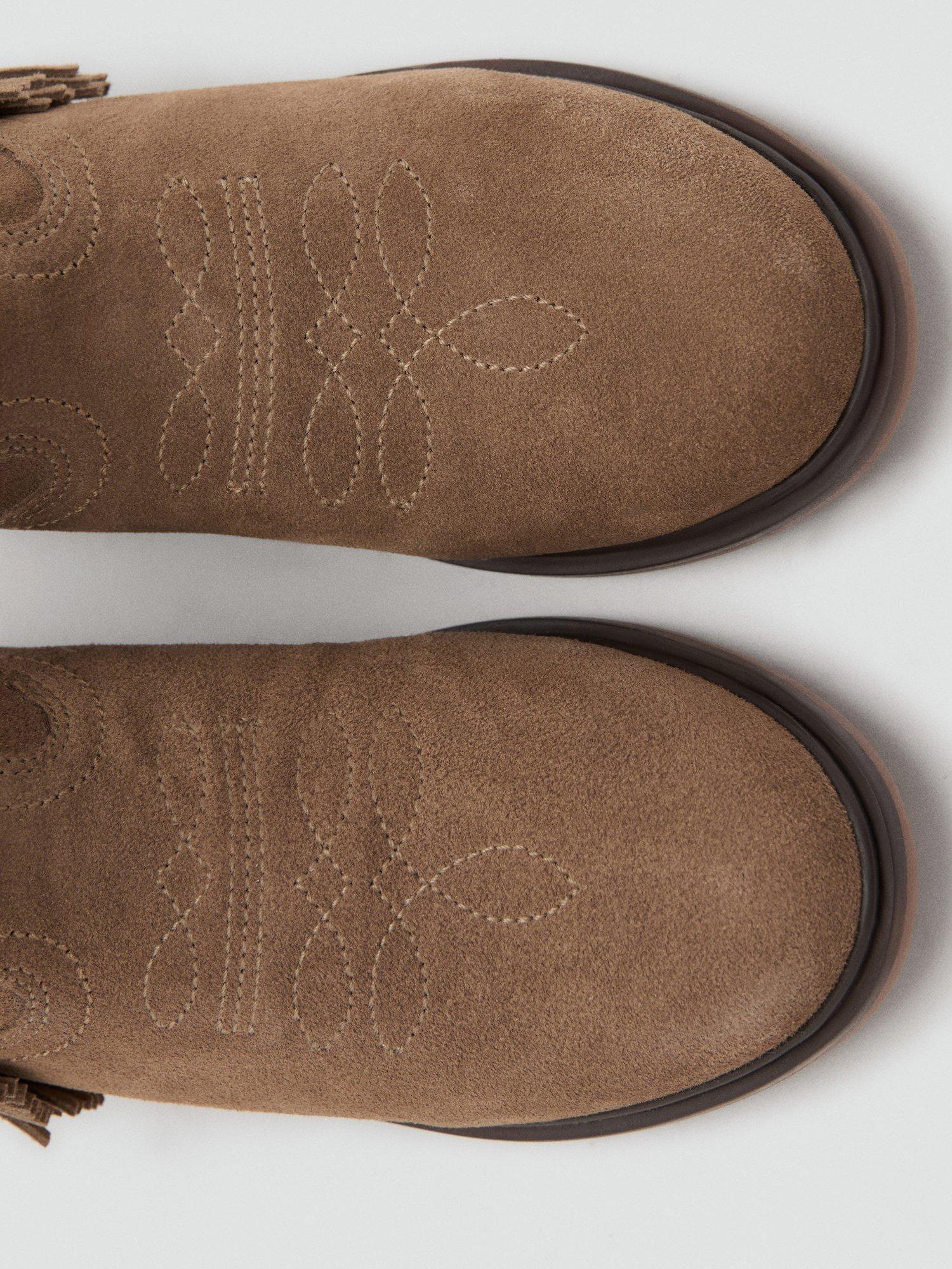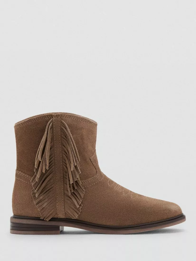 A pair of leather ankle boots, with embroidered details and fringing. The flat heel and zip fastening make them perfect for all-day adventures, keeping you comfortable and ready for anything.