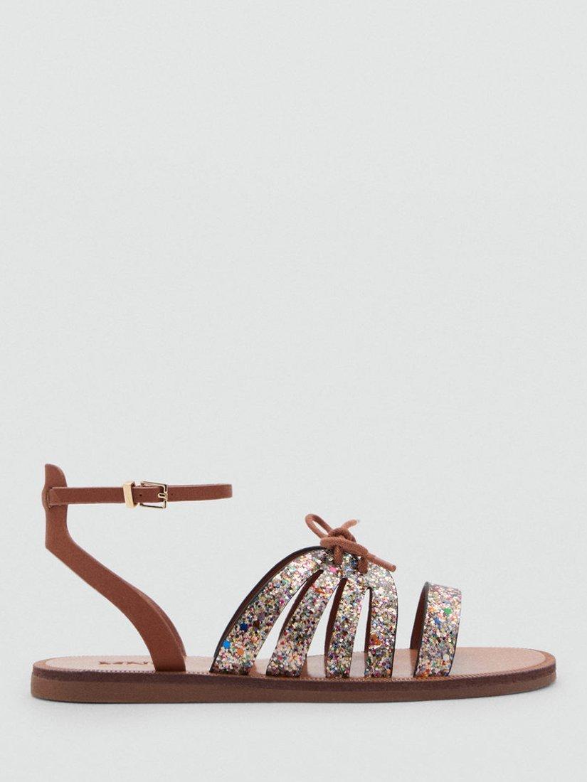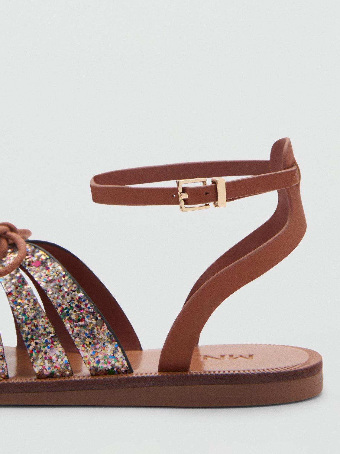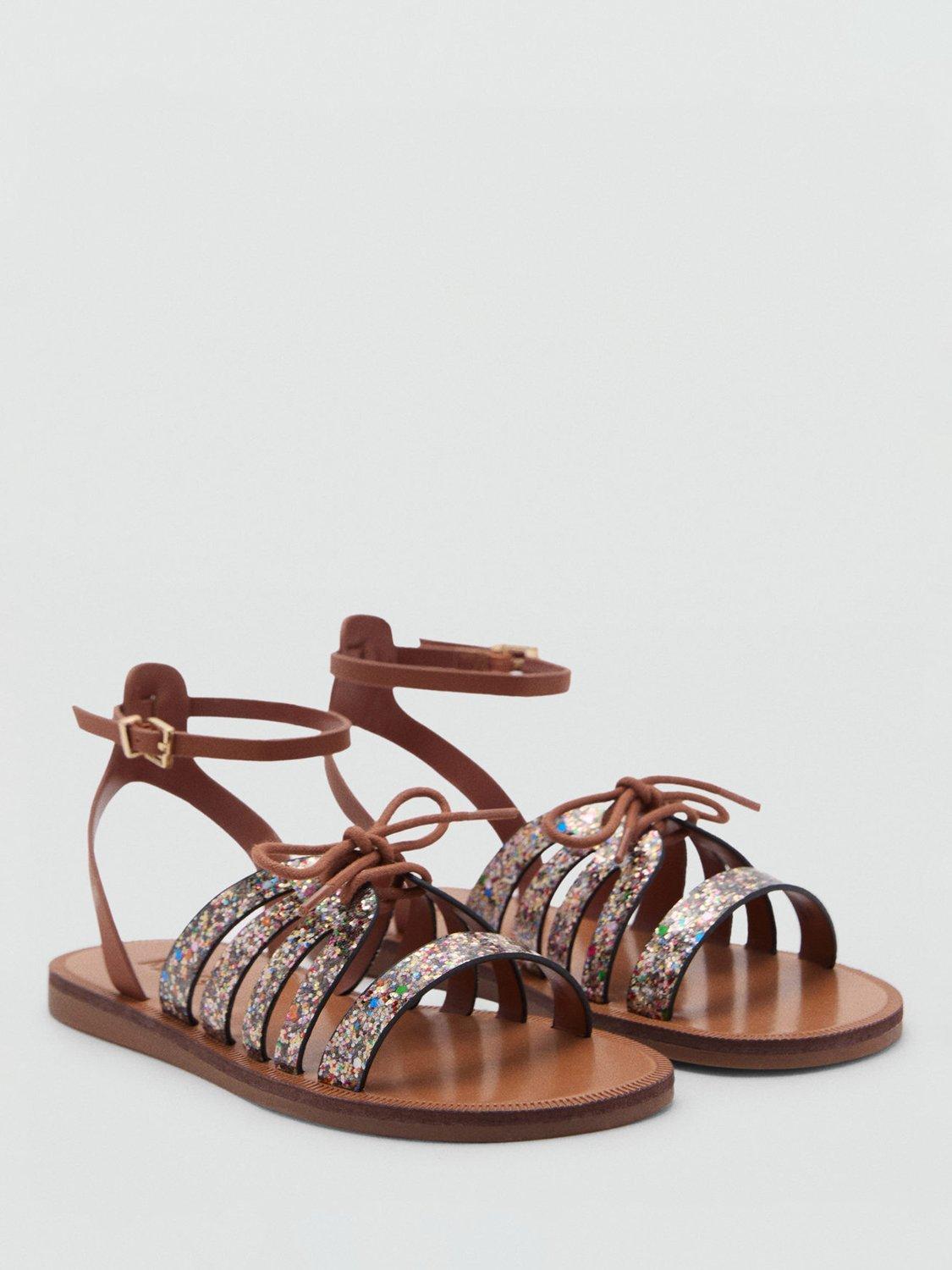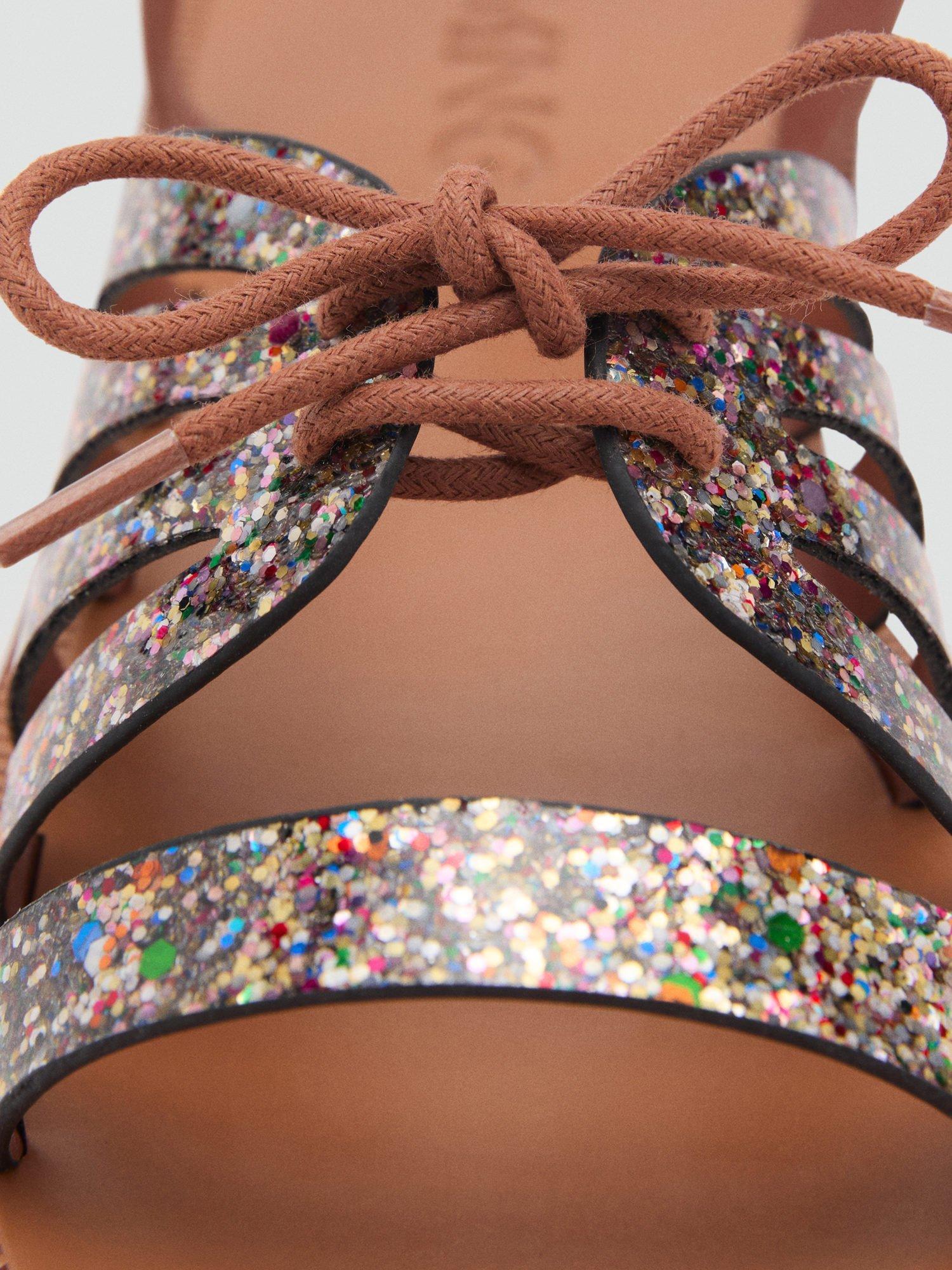 Strappy sandals with a glittery texture, cord detail and buckle closure.