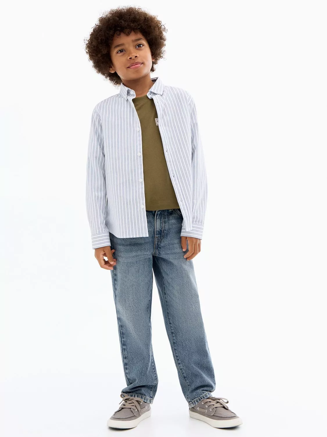 Cut to a classic dad style, these straight-fit denim jeans feature belt loops, five pockets, and button-zip fastenings.