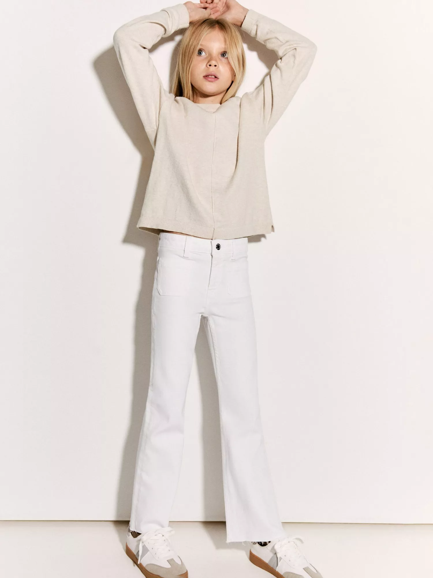 Champion easy everyday style with these denim jeans. The flared cut, patch pockets and frayed hems keep them stylish, while soft cotton blend fabric ensures comfort. Easy to style and perfect for exploring.