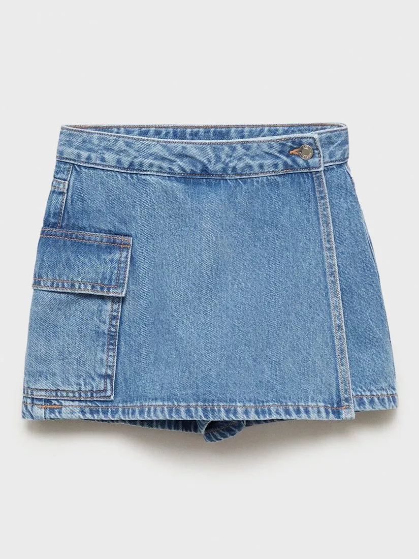 A staple for summer, this skort from Mango is made from cotton denim with a wrapover front and a patch pocket to the side.