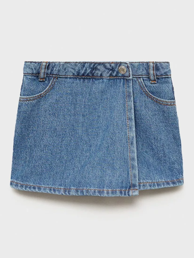 Made from 100% cotton denim with a wrapover front, this skort from Mango provides the comfort of shorts with the appeal of a skirt.