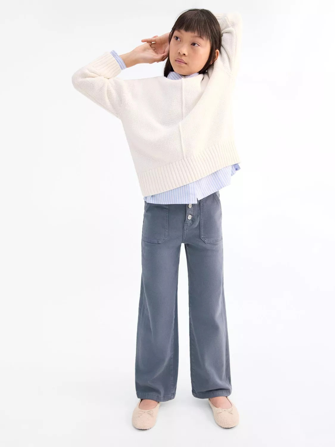 Perfect for all-day comfort, these long culotte jeans are made from a breathable stretch-cotton denim. They feature a stylish button-up fastening, practical belt loops, and multiple pockets, including two smart patch pockets at the back.