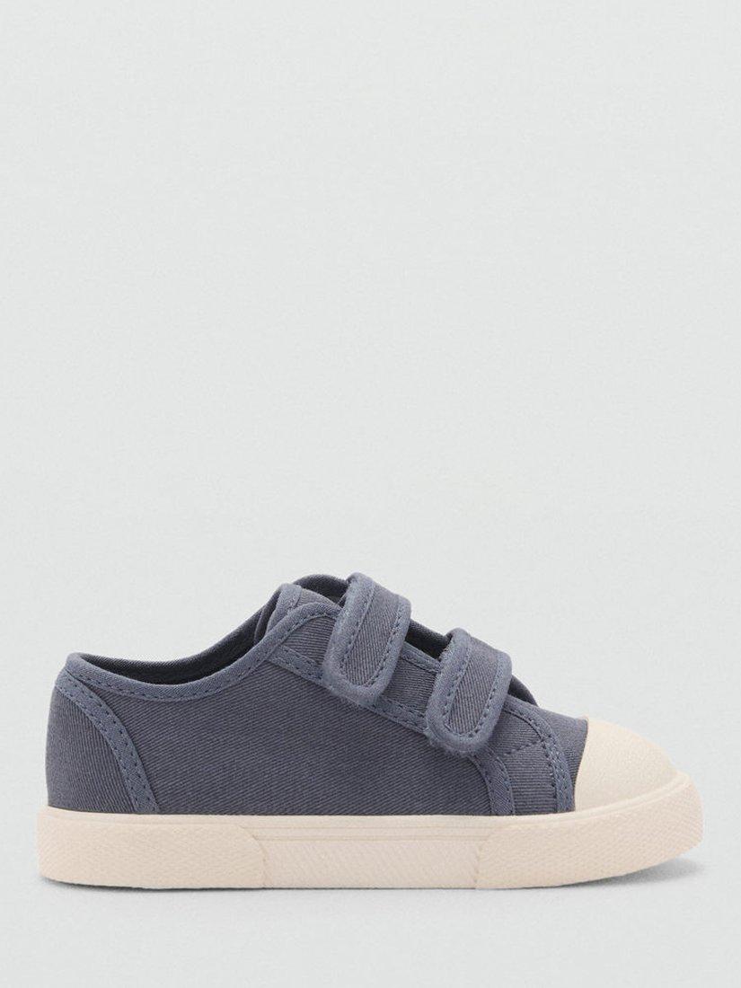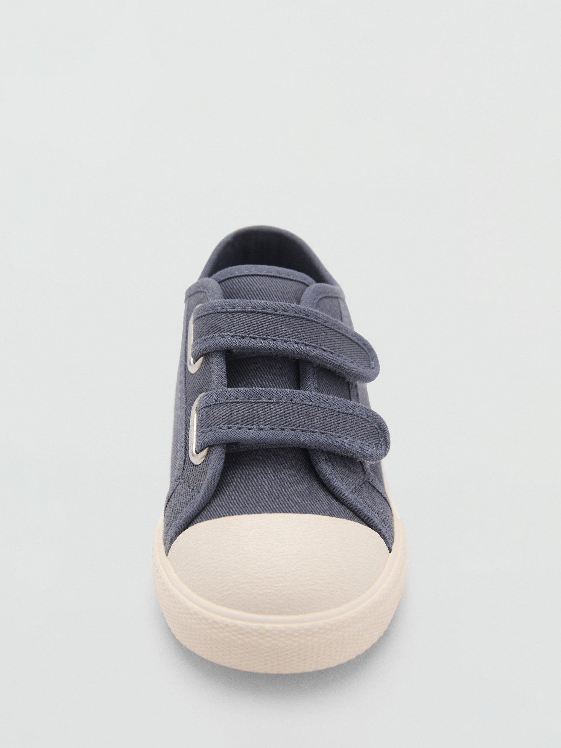 Cotton fabric trainers with decorative seams, a round toe and contrast rubber sole. Made with double rip-tape strap fastenings for an easy and comfortable fit.