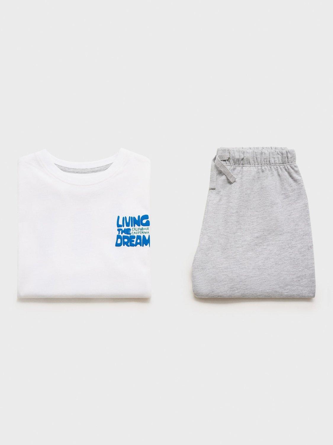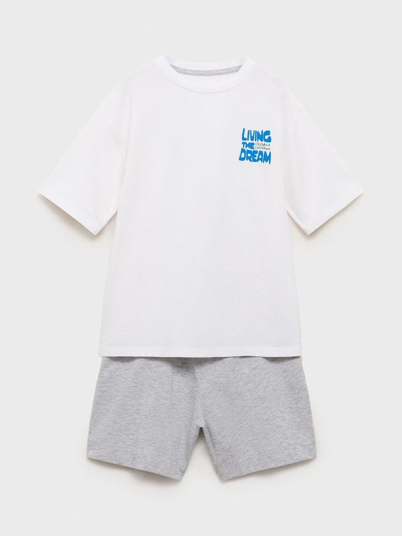 A pyjama set from Mango, made from a soft cotton blend. The top is designed with a round neck, short sleeves and graphic prints to the front and back. The shorts feature an elasticated drawstring waist for easy on-and-off.