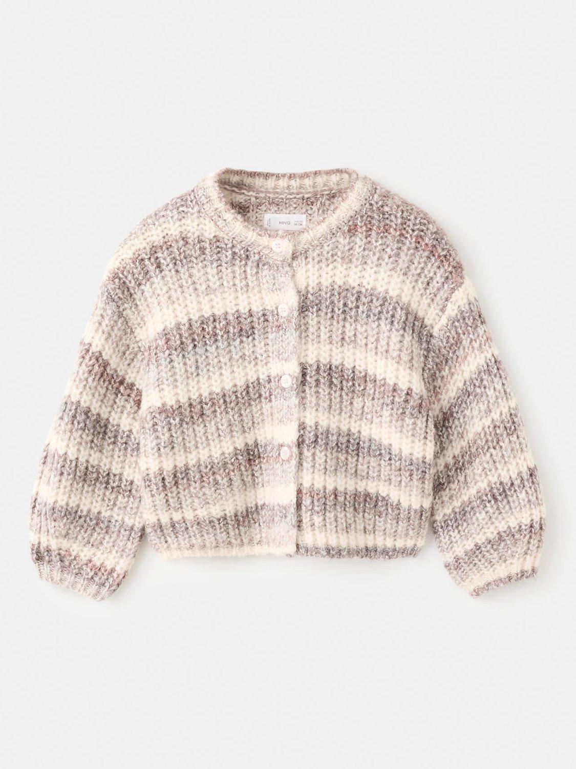 This cosy child's cardigan features a delicate speckled jacquard knit and a classic straight design. It's complete with a round neck, secure front buttons, and ribbed detailing at the collar, cuffs, and hem for a perfect fit.