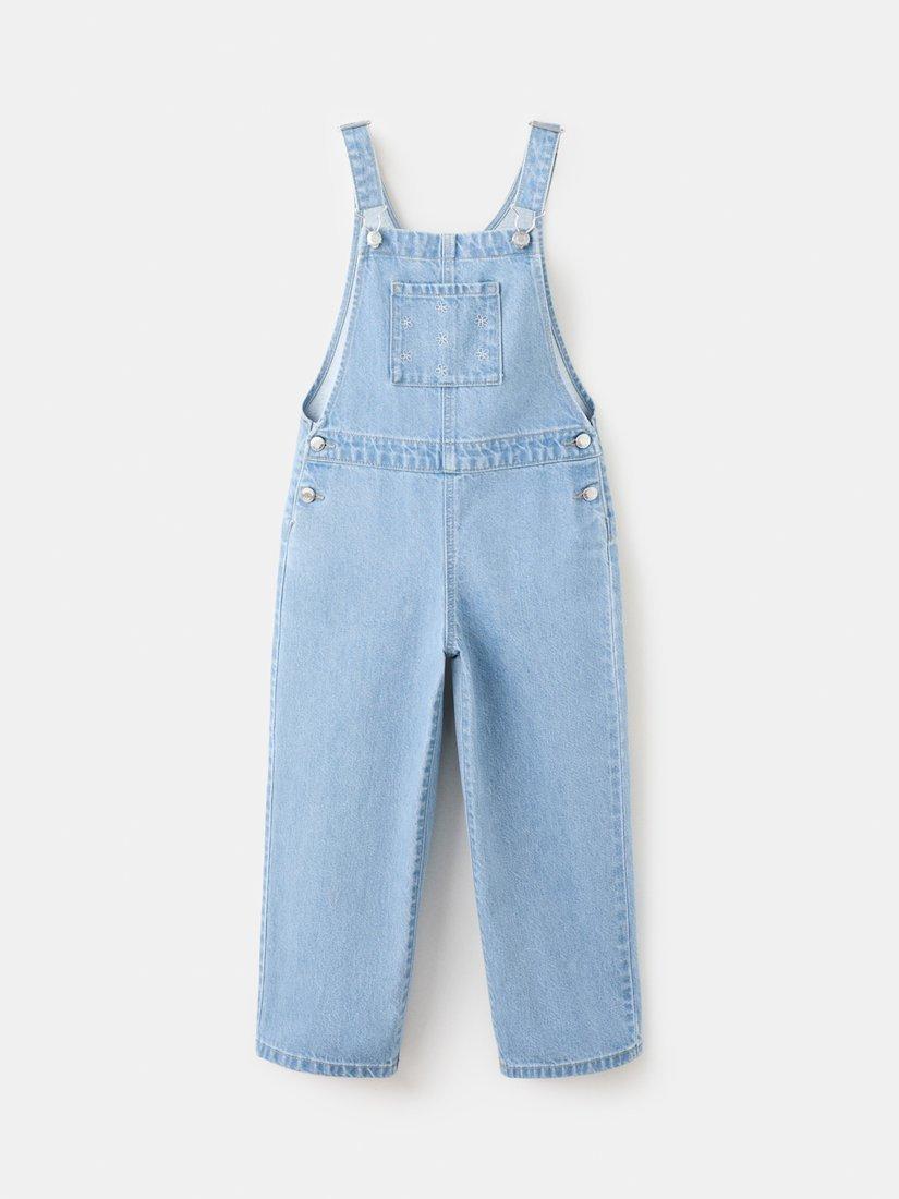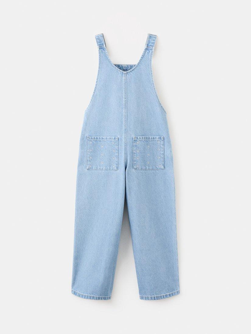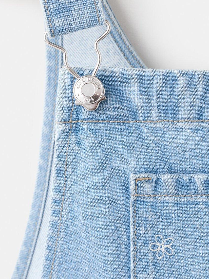 MangoKids' Embroidered Denim Dungarees, Mid Denim