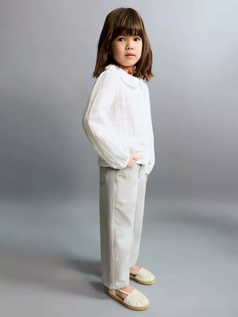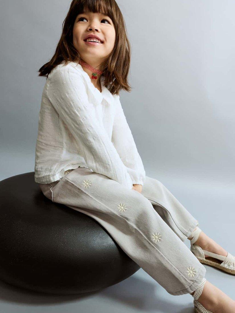 These straight-fit jeans drape softly for all-day comfort. Detailed with embroidered daisies, they are sure to be a favourite.