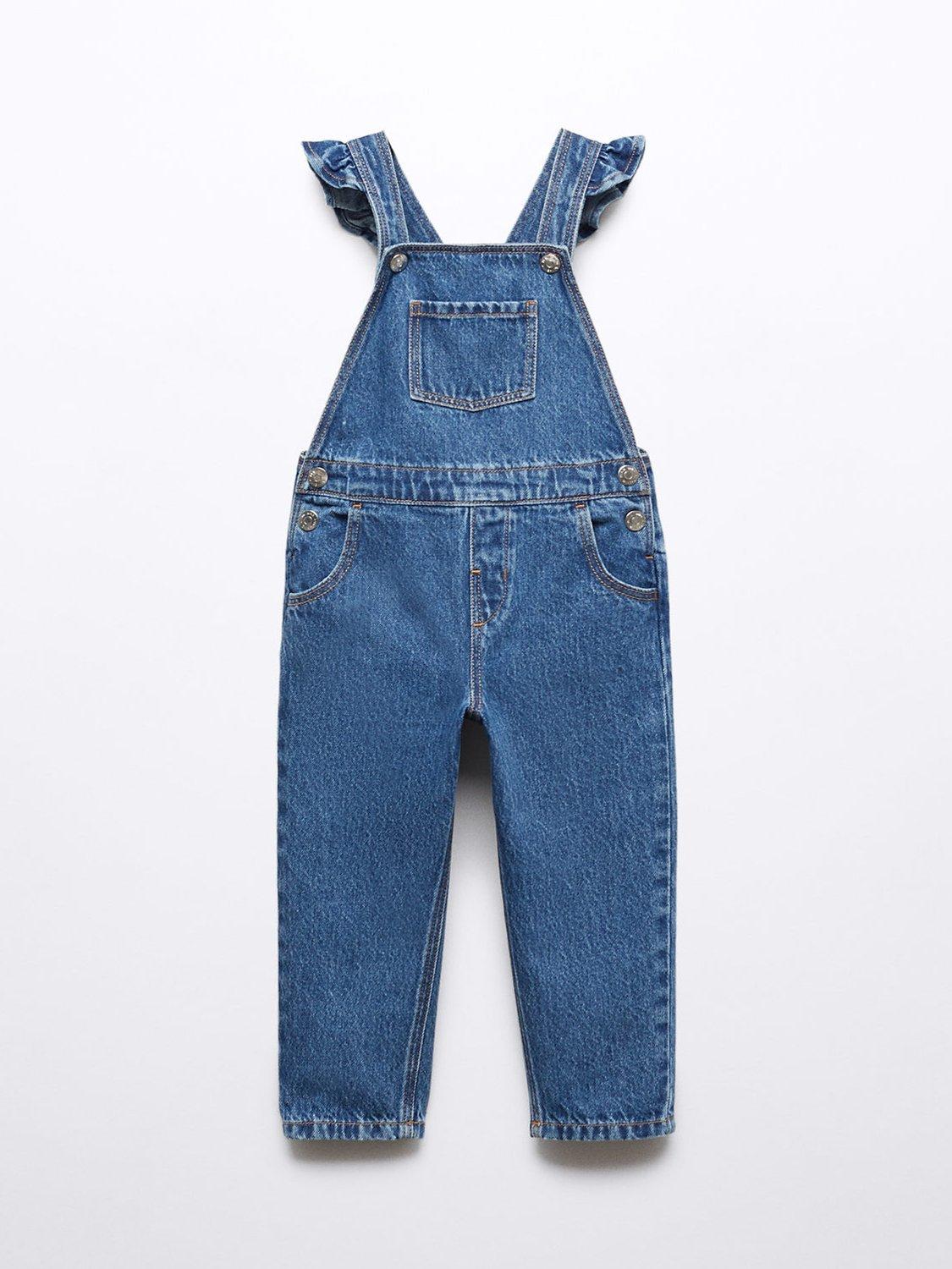 MangoKids' Emille Long Denim Dungarees, Open Blue