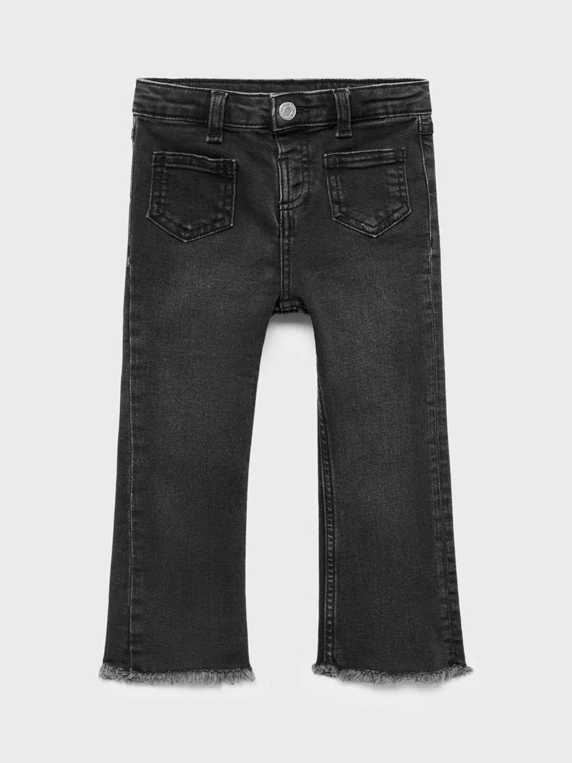 Crafted from soft cotton with a hint of stretch, these jeans are cut with a flared design, belt loops, button closure, two front pockets and two patch pocket at the back. Finished with frayed hems.