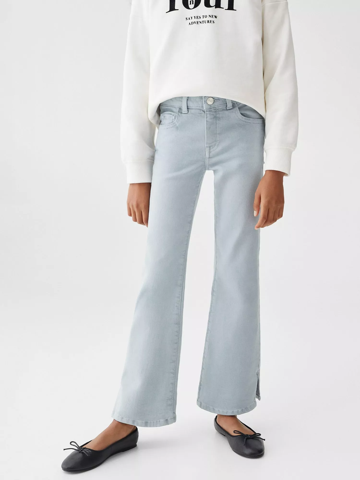 MangoKids' Flarel Side Slit Flared Jeans, Medium Blue