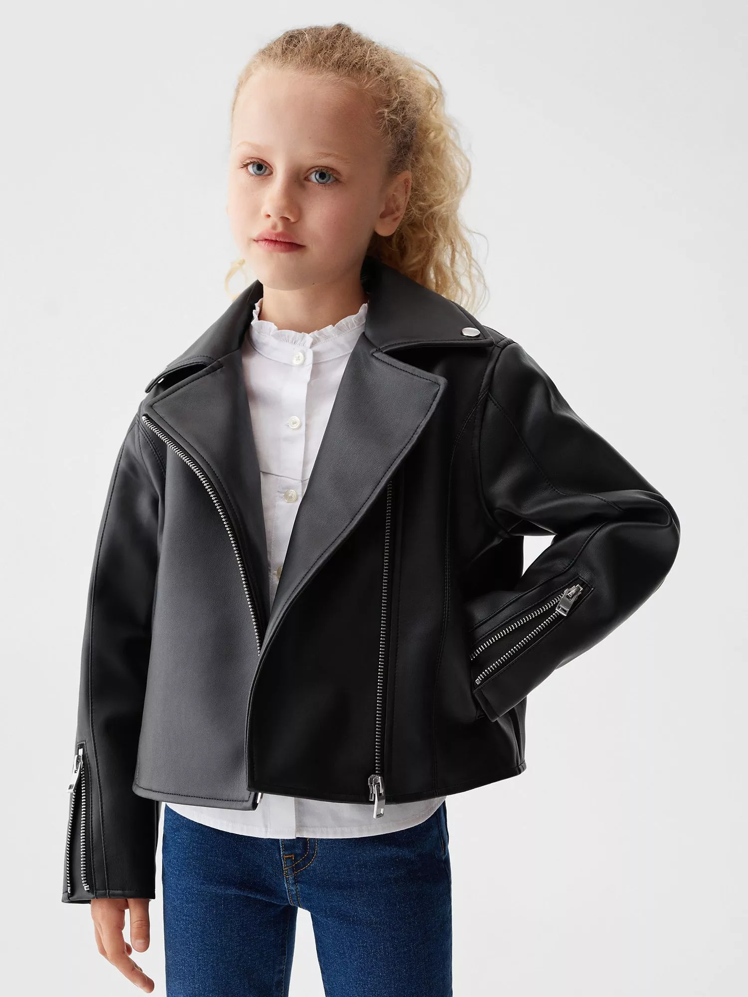 This faux leather jacket will add some on-trend style to their outfit.