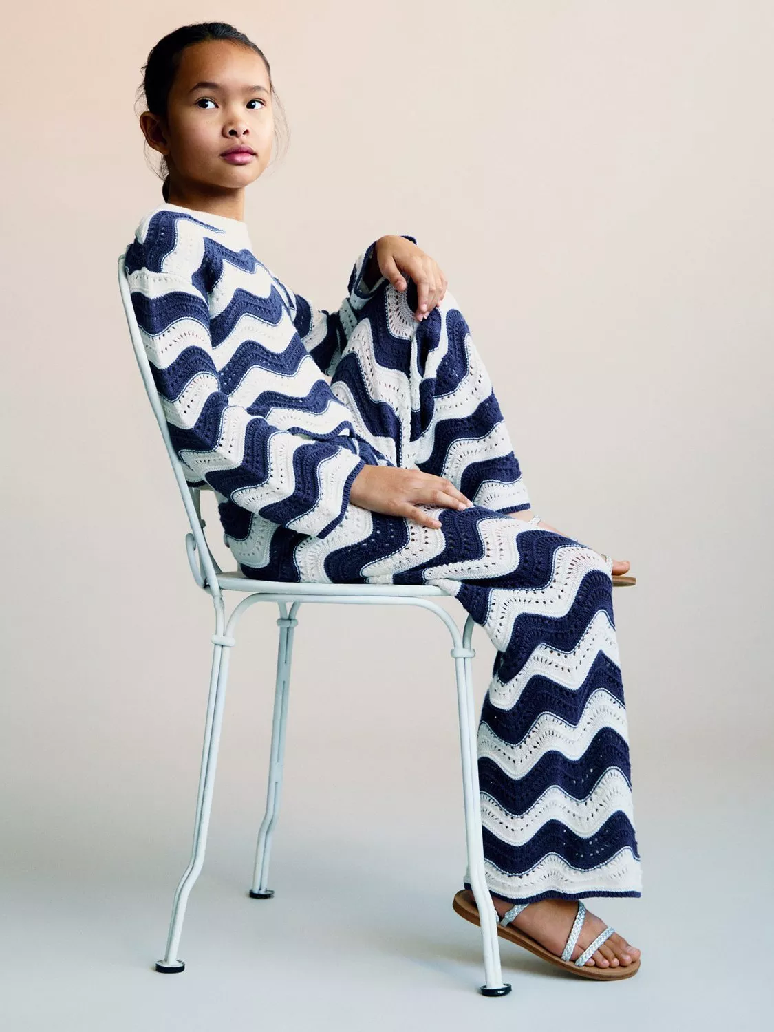 MangoKids' Halip Cotton Open Knit Zig-Zag Trousers, Medium Blue