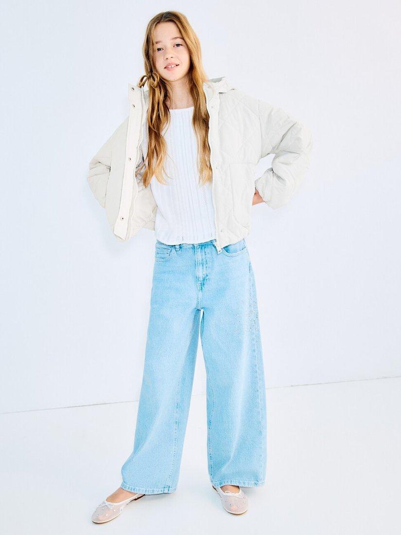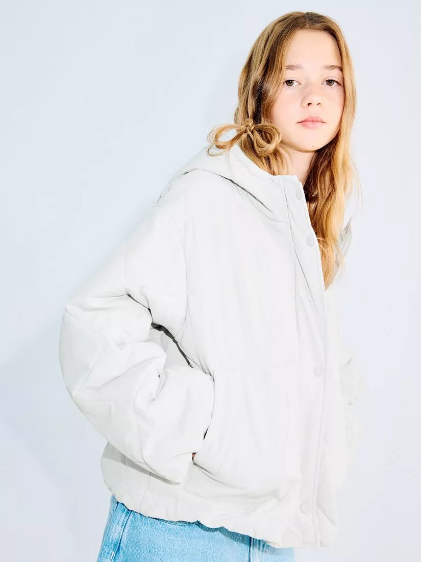A lightweight quilted puffer that wraps them in cloudlike warmth, sculpted into a roomy cocoon silhouette for confident layering.
