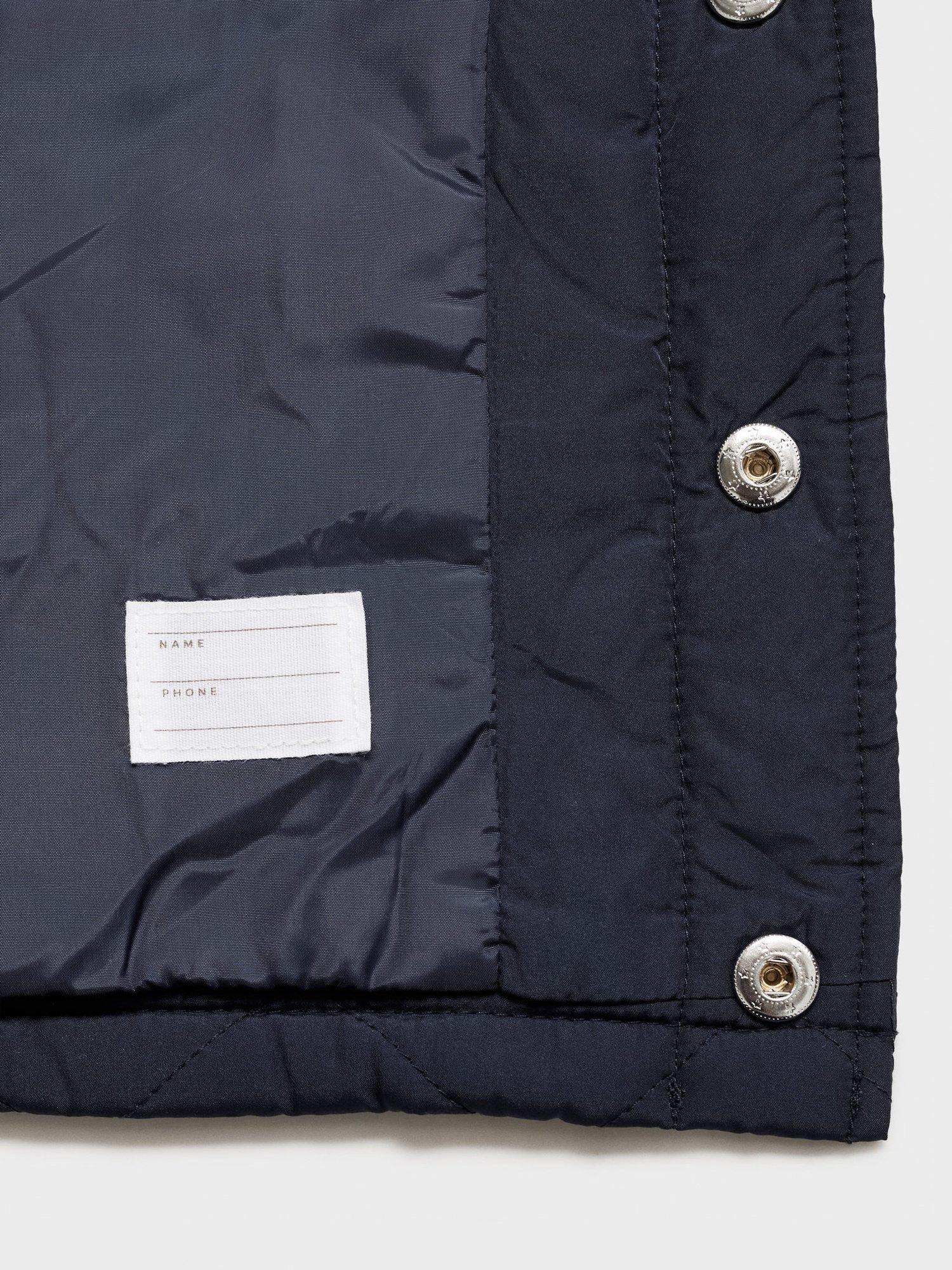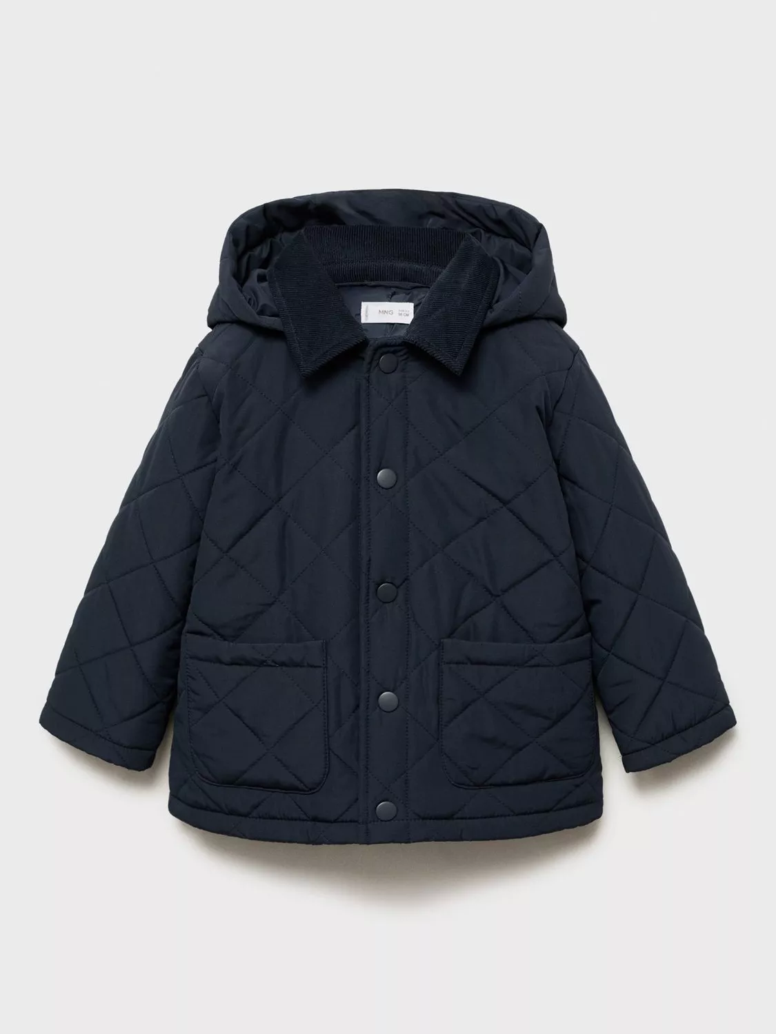 This quilted coat with a corduroy collar keeps them cosy on casual days with its practical design and plain pattern, perfect for layering during cooler weather.