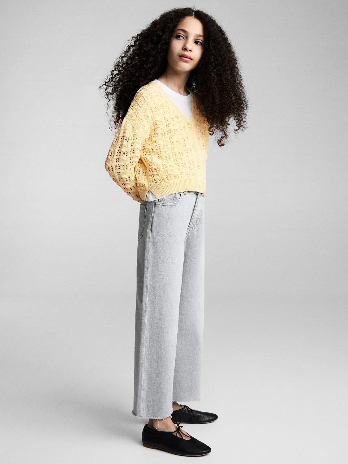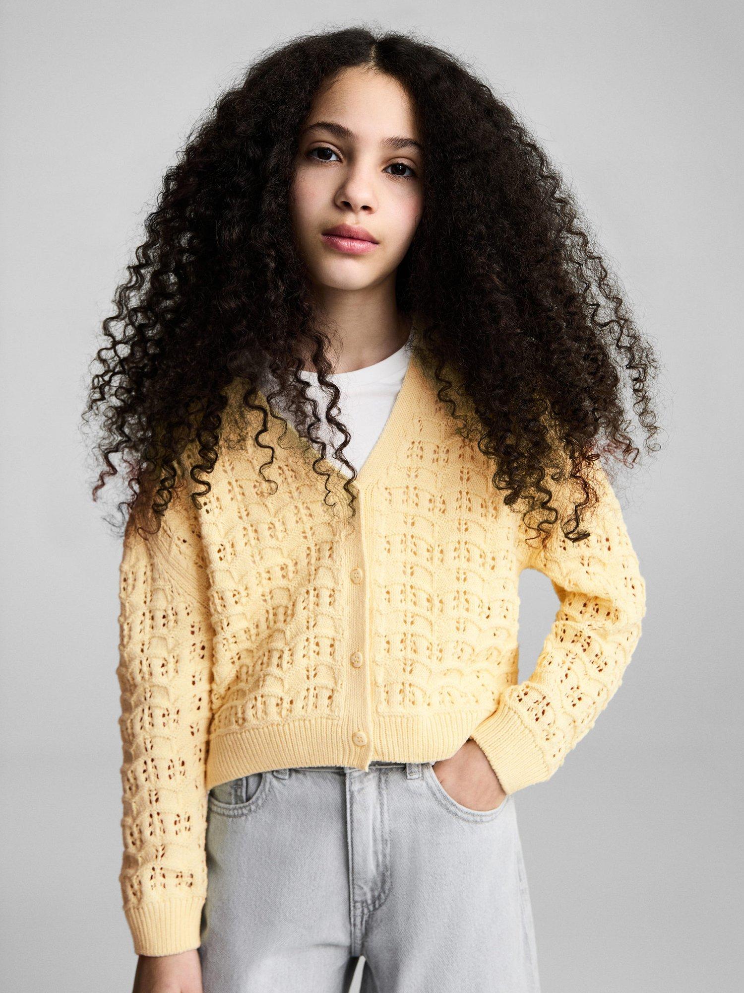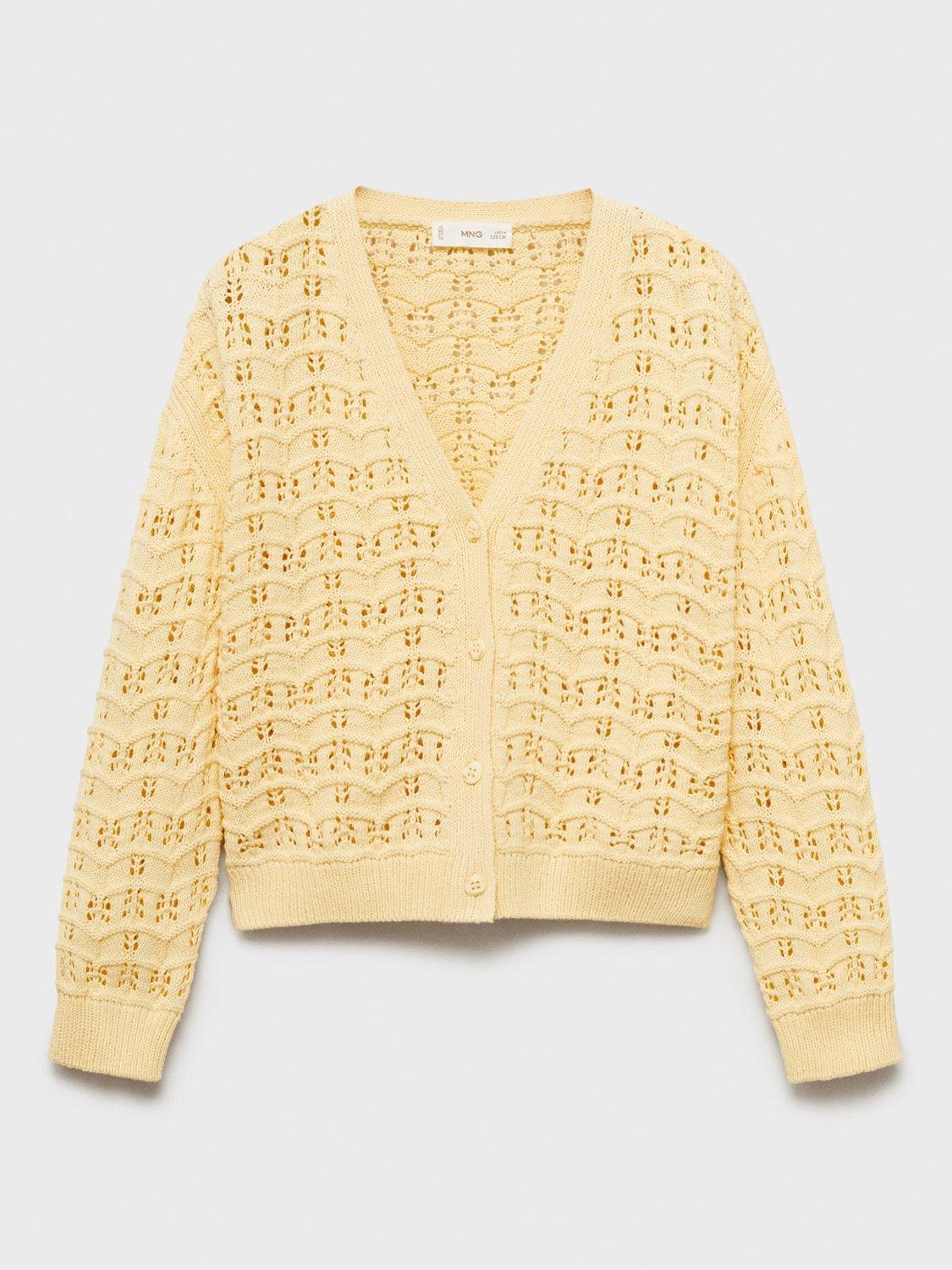 MangoKids' Isla Open Knit Cardigan, Yellow