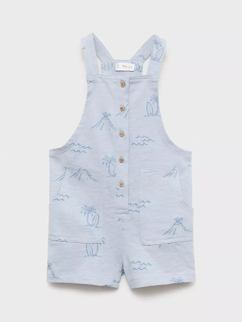 Mango's short island print dungarees in soft cotton. Designed for comfort and easy movement, they're perfect for exploring, playing, and making memories. Simple to slip on, they're a practical choice for everyday fun.