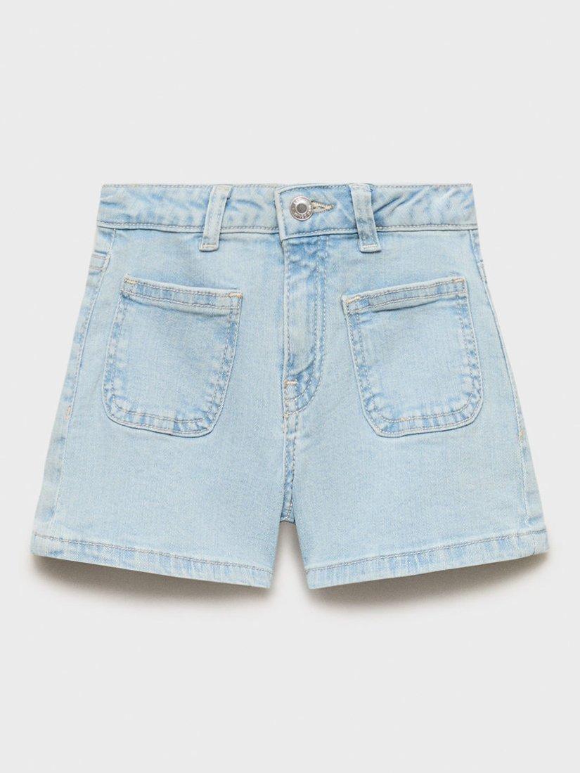 Denim-style cotton shorts in a straight, short design. Features belt loops, two patch pockets at the front, two patch pockets at the back and button and zip fastening.