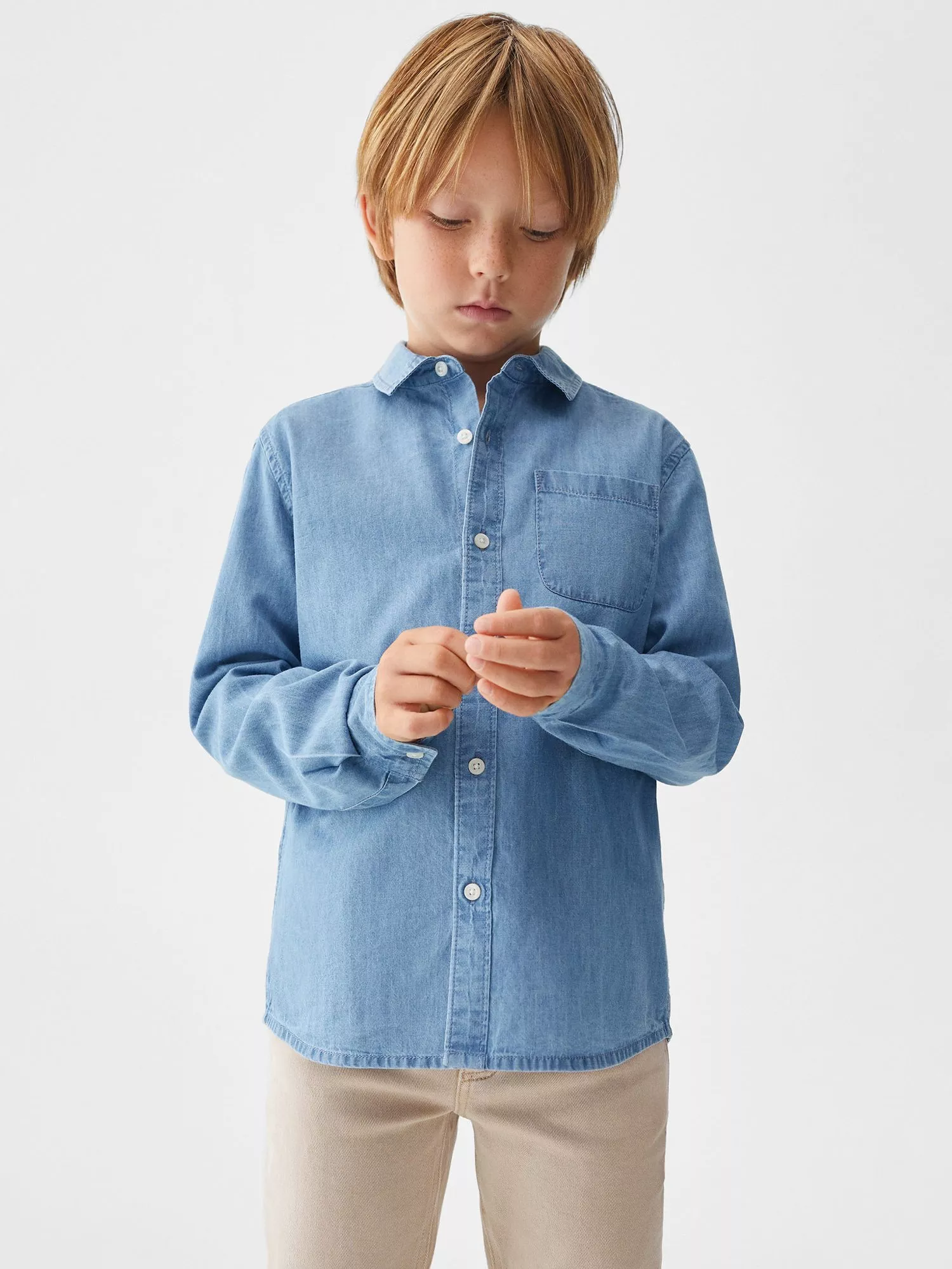 MangoKids' Joan Regular Fit Denim Shirt, Open Blue