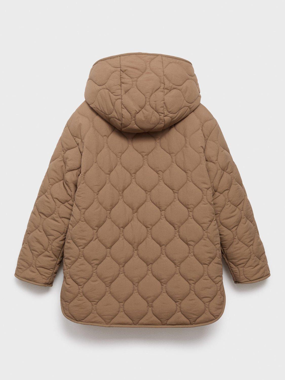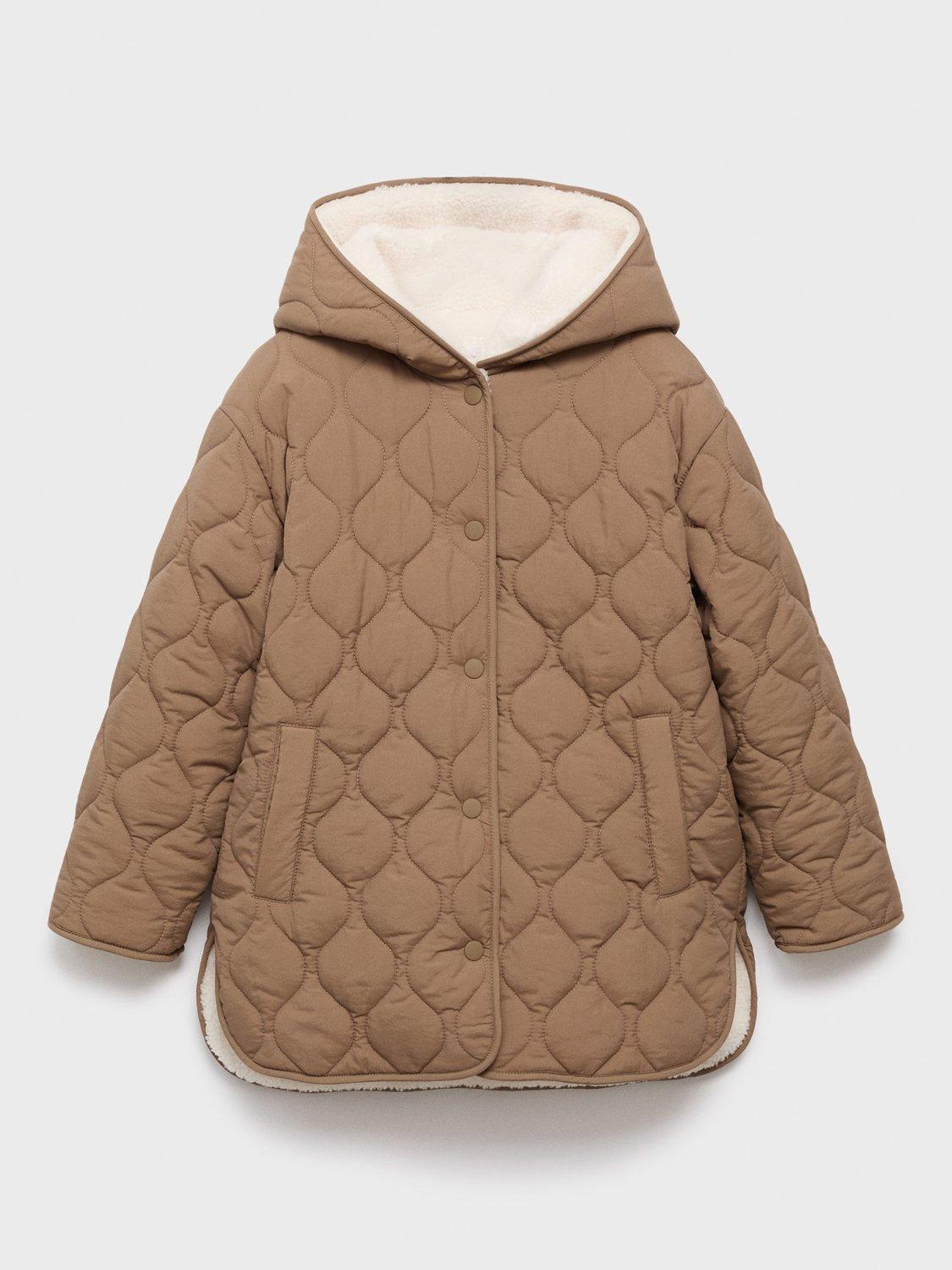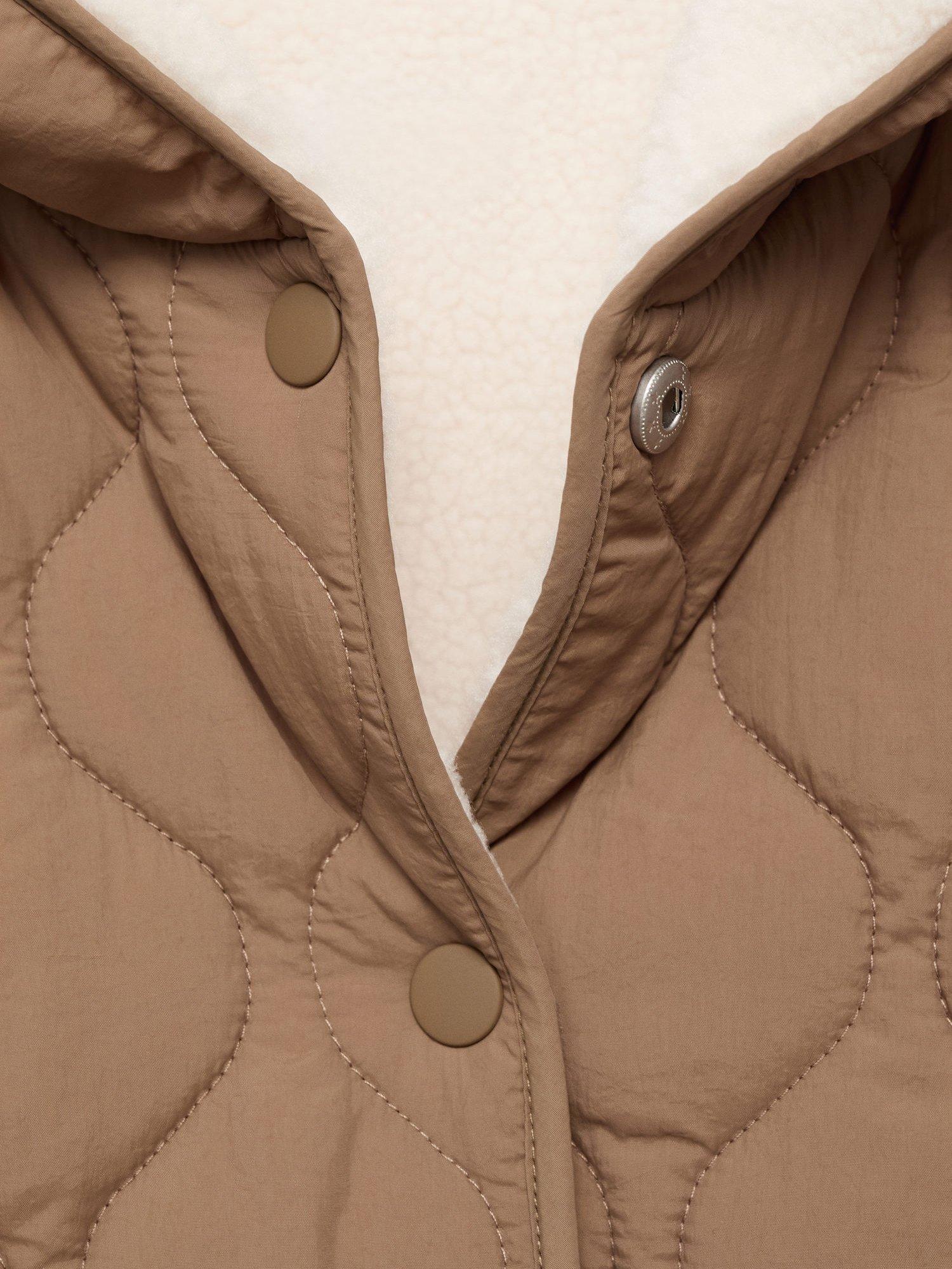 Quilted fabric, long design with hood. Front closure with buttons, two side pockets and an inner polar fleece lining.