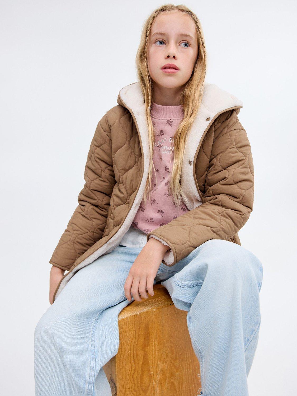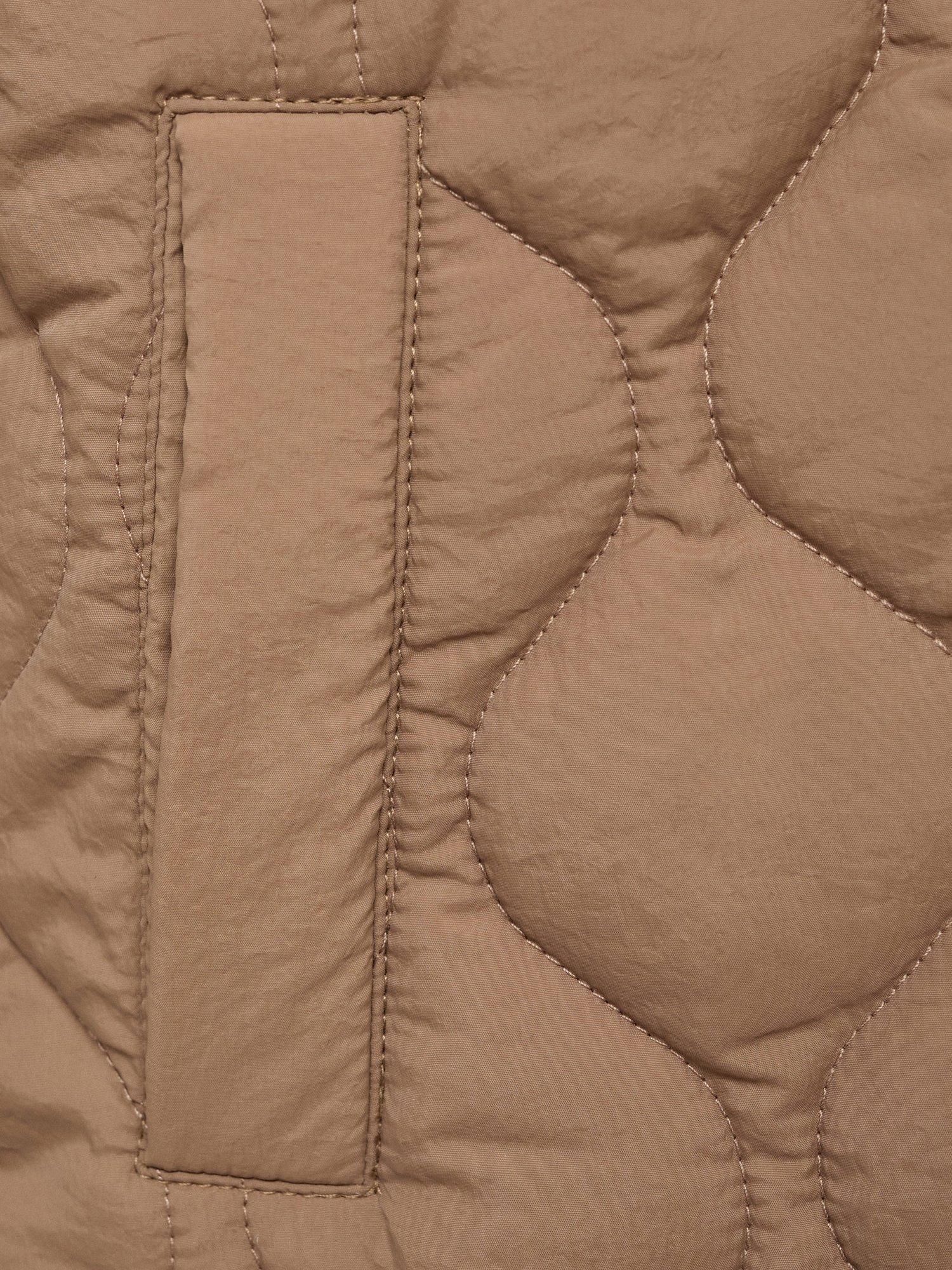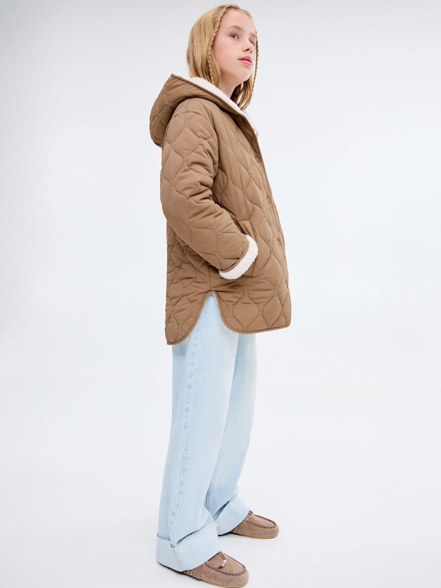 Quilted fabric, long design with hood. Front closure with buttons, two side pockets and an inner polar fleece lining.