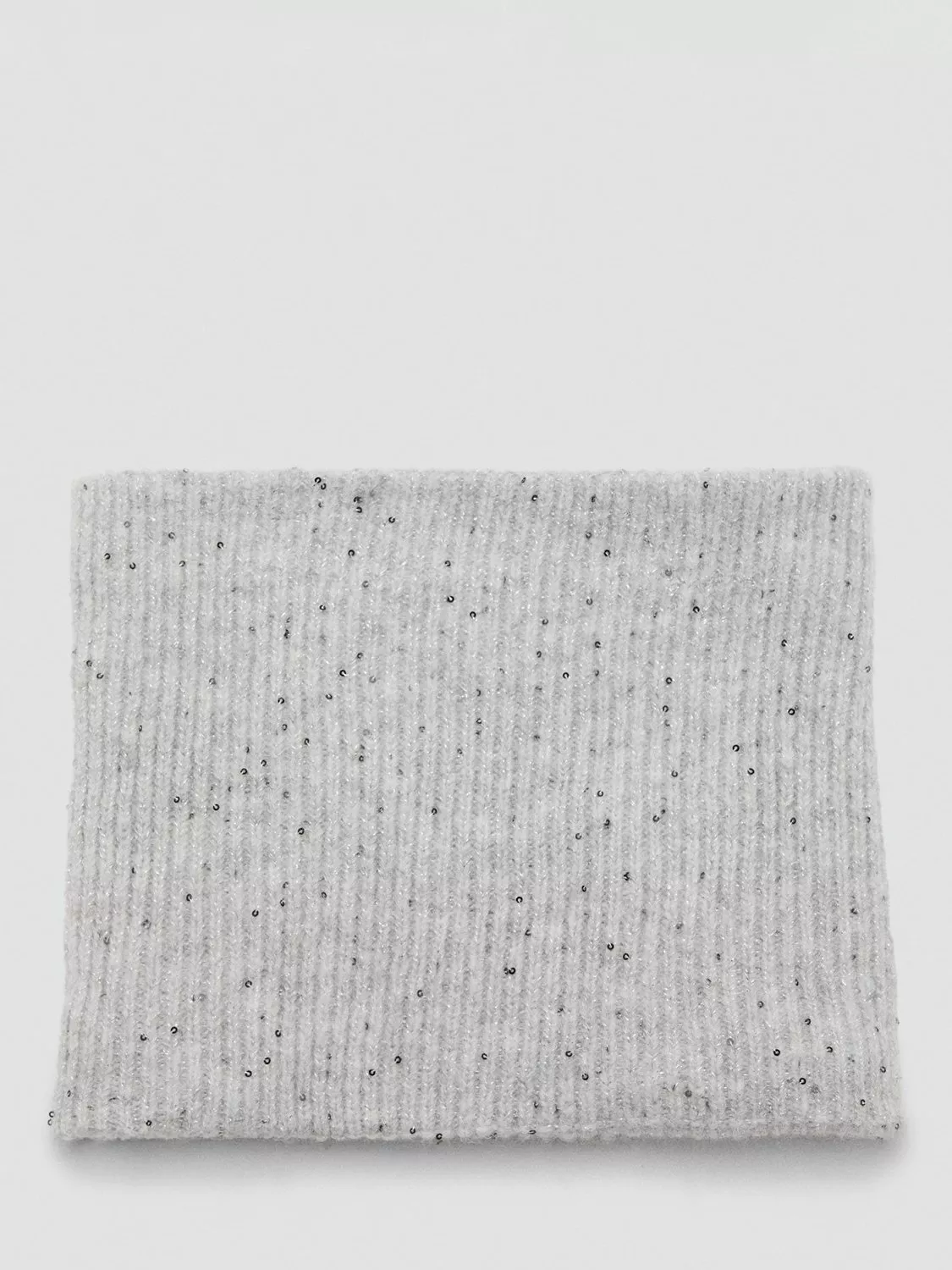 Crafted with a cosy polar fleece lining, this scarf is adorned with scattered sequins across the knitted ribbed design. Perfect for layering in the winter months.
