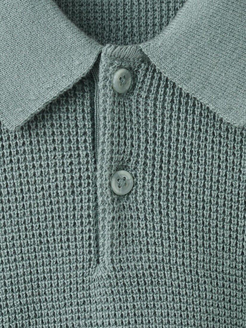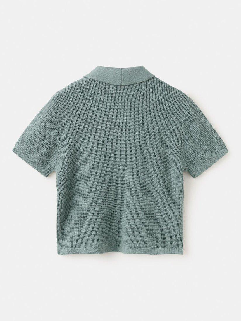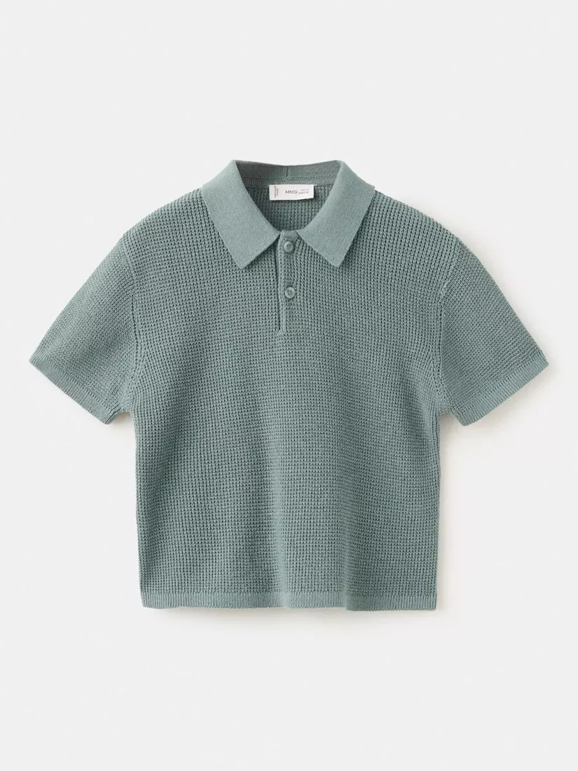 MangoKids' Knitted Short Sleeve Polo Top, Moss