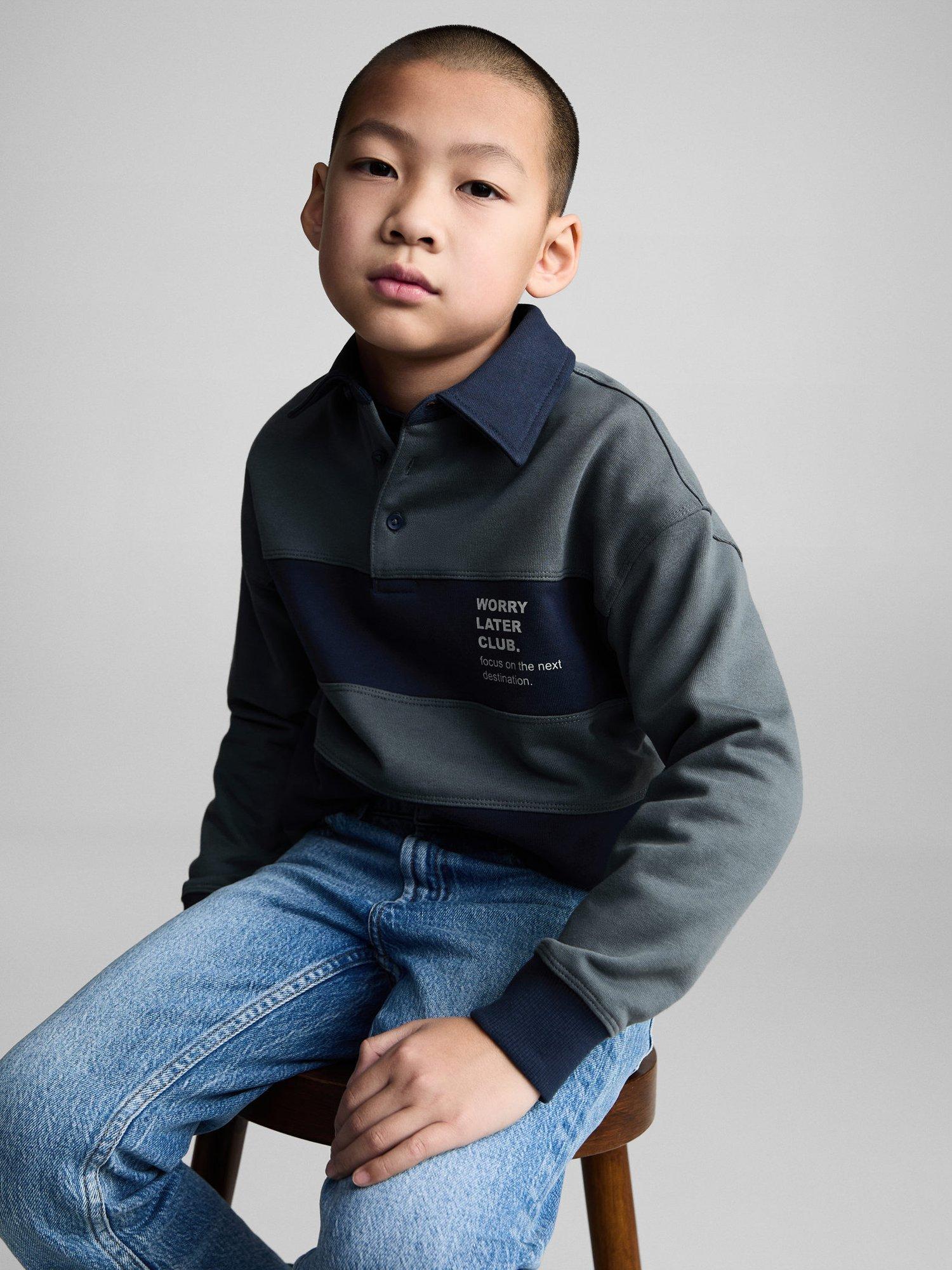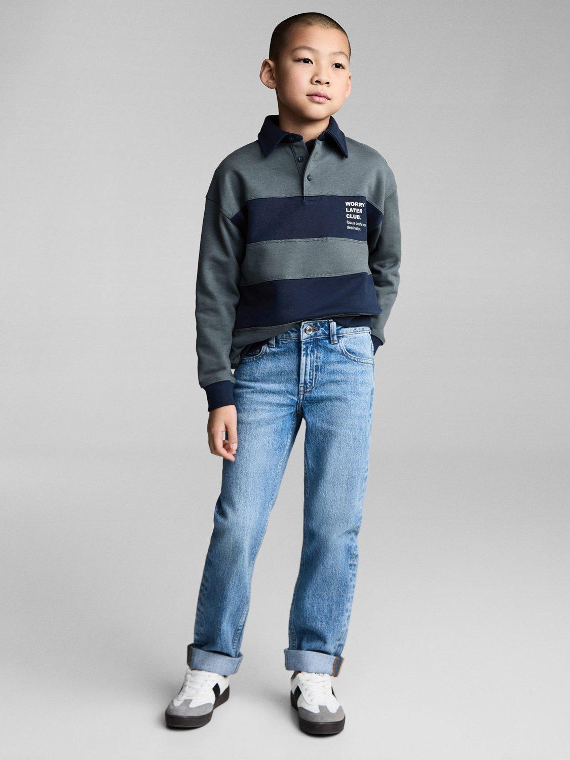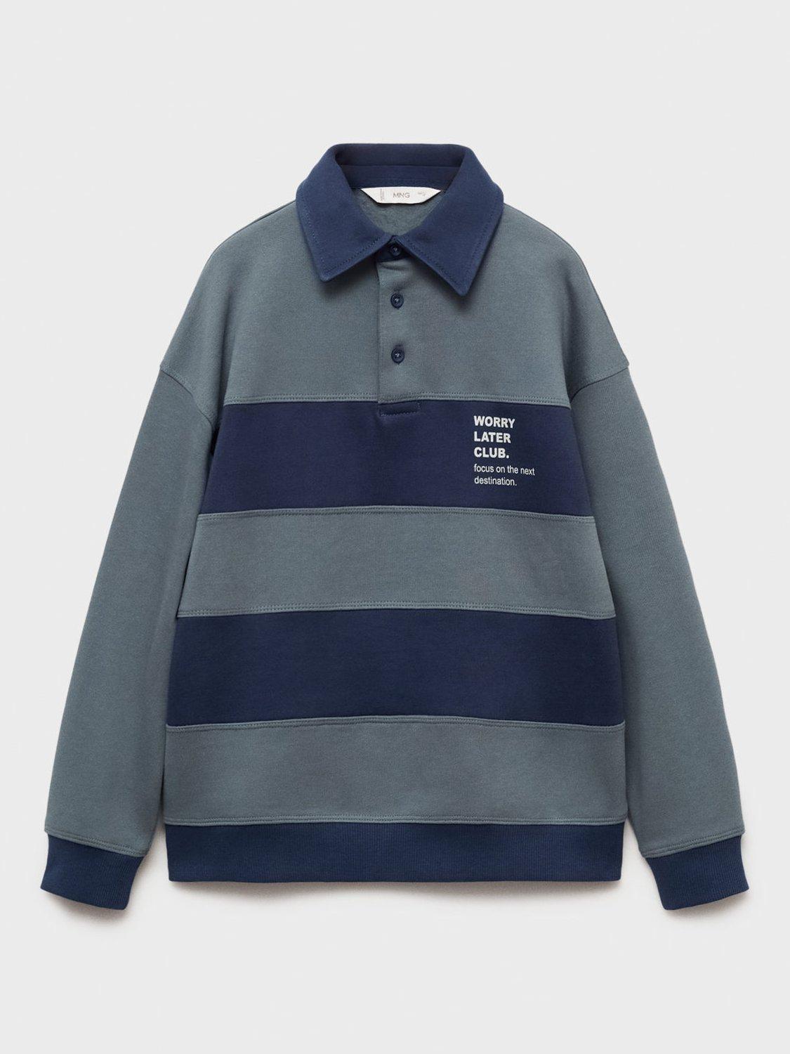 MangoKids' Later Stripe Polo Neck Sweatshirt, Navy/Multi