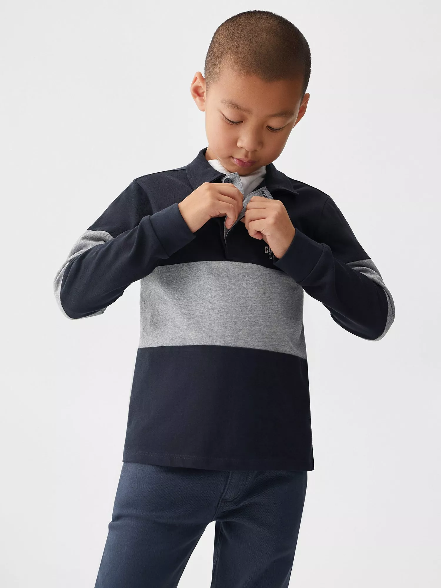 MangoKids' League Polo Style Stripe Jumper, Navy/Grey