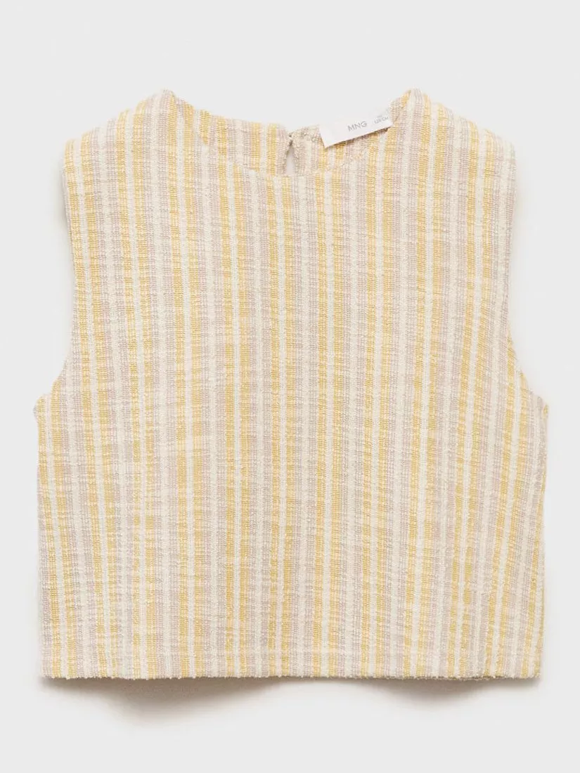 Designed with a zingy stripey print, this sleeveless blouse from Mango is made from a soft blended fabric.