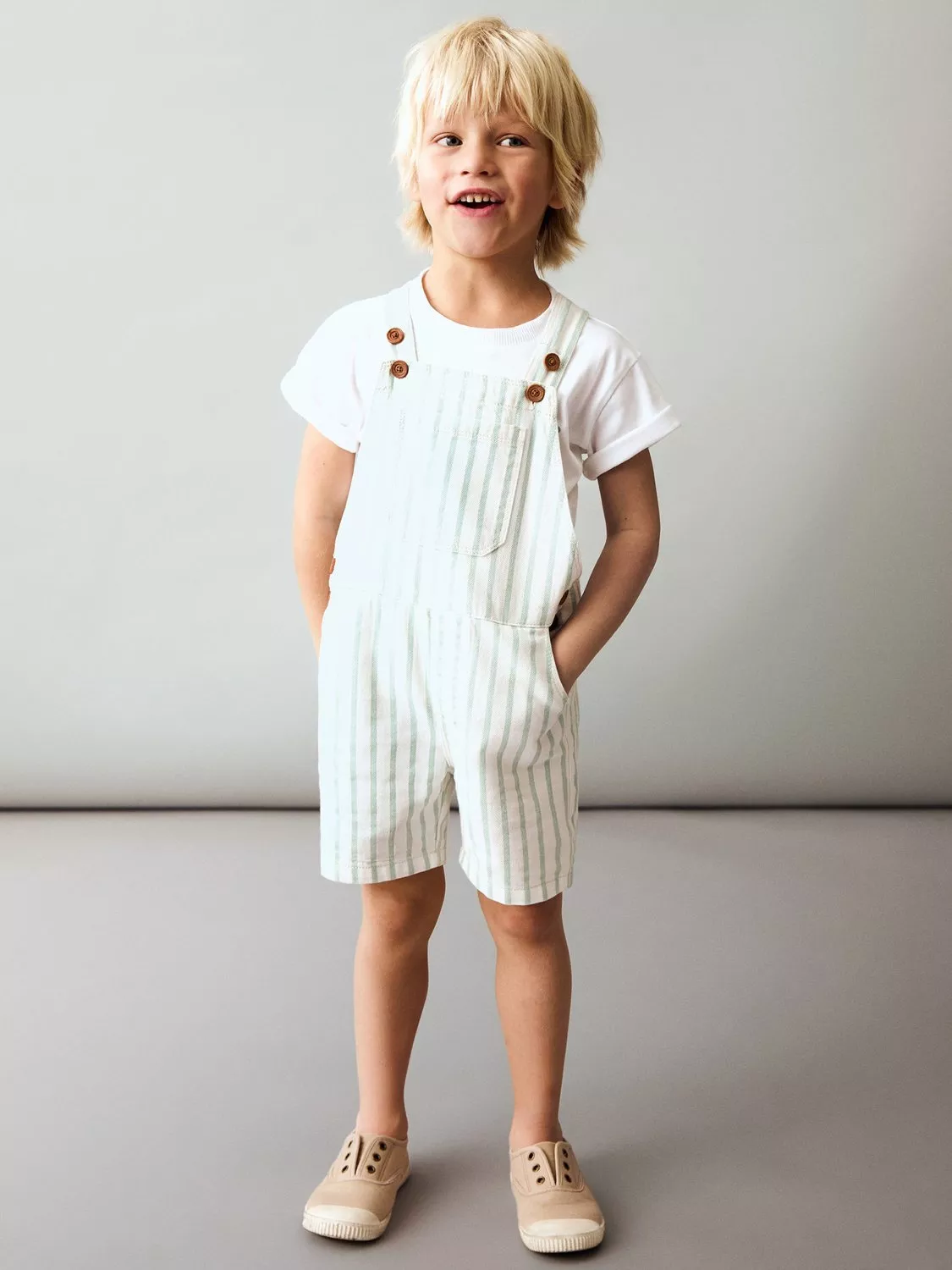 An easy on-off essential, these cute denim-style dungarees from Mango are crafted from breathable, striped cotton fabric and designed with simple button closures and patch pockets for little hands.