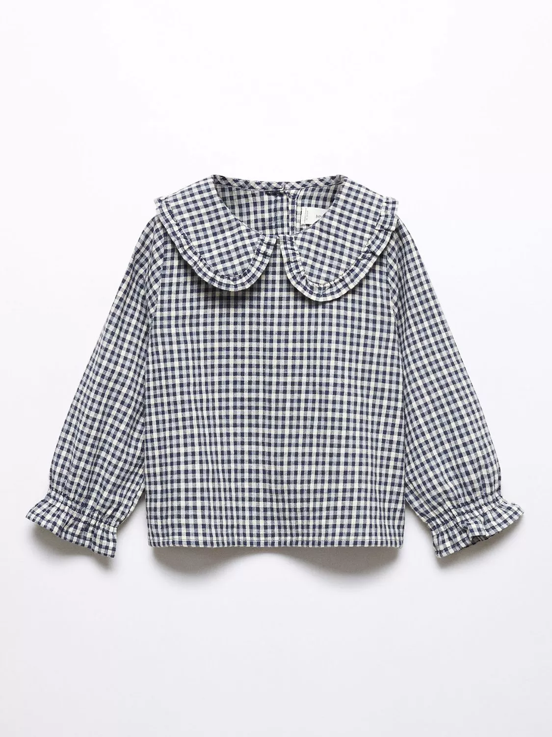 MangoKids' Lirio Gingham Check Blouse, Navy