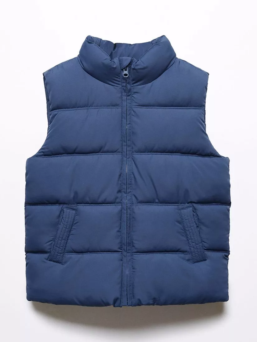A comfy gilet from Mango quilted for warmth with a turtleneck, side pockets and a full-zip front. Finished with a handy name label on the inside.