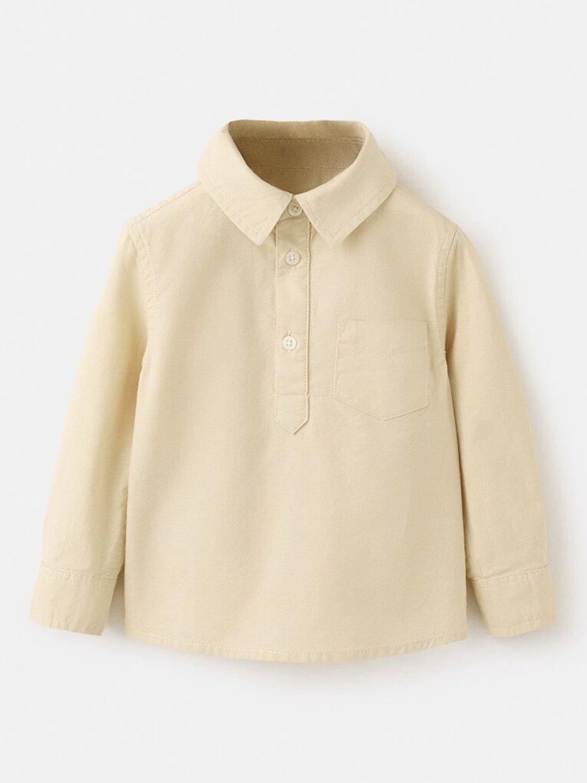 This long sleeve cotton popover shirt keeps them comfortable for everyday play or special occasions. It's simple style makes it easy to mix and match with their favourite trousers.