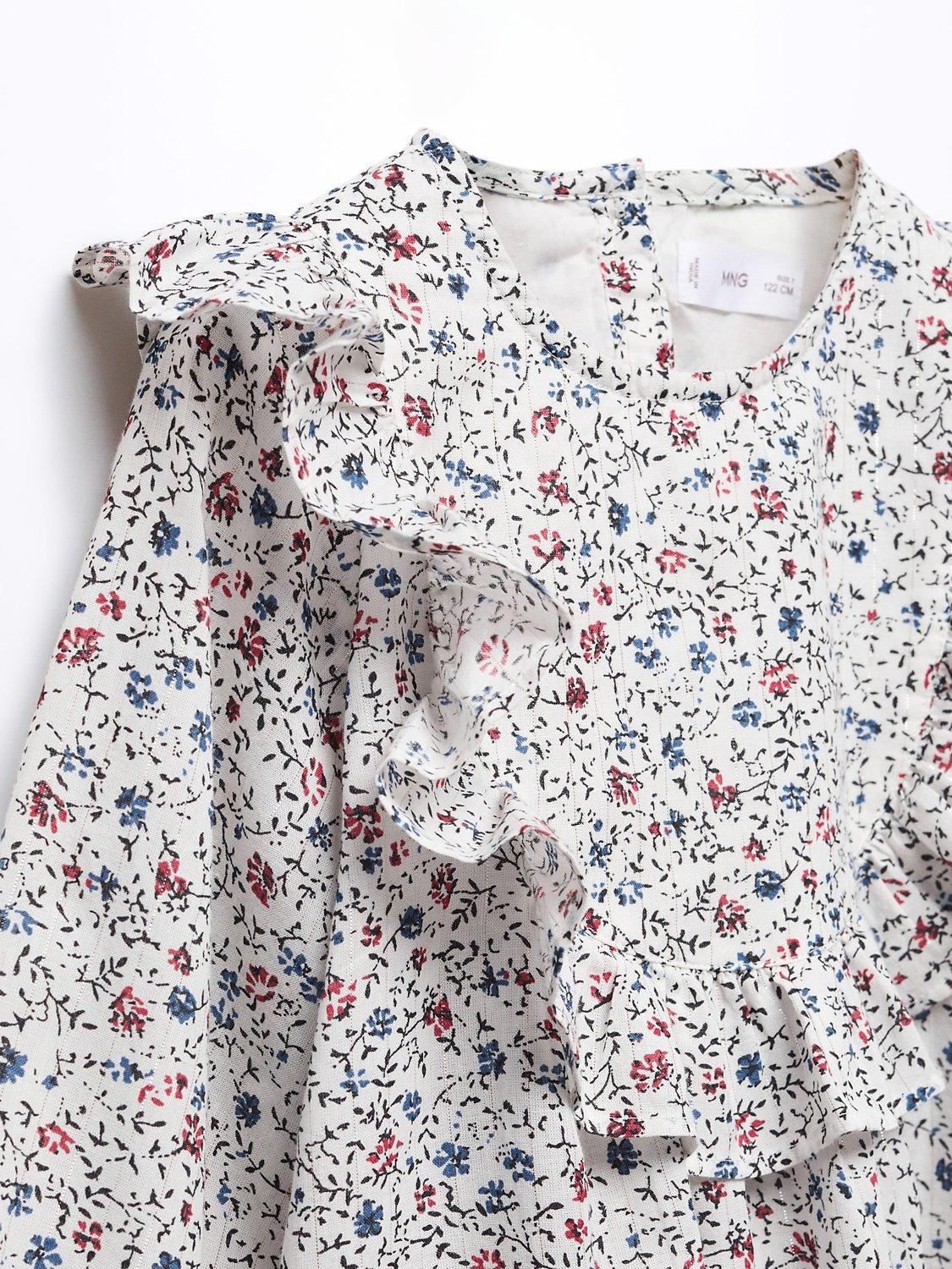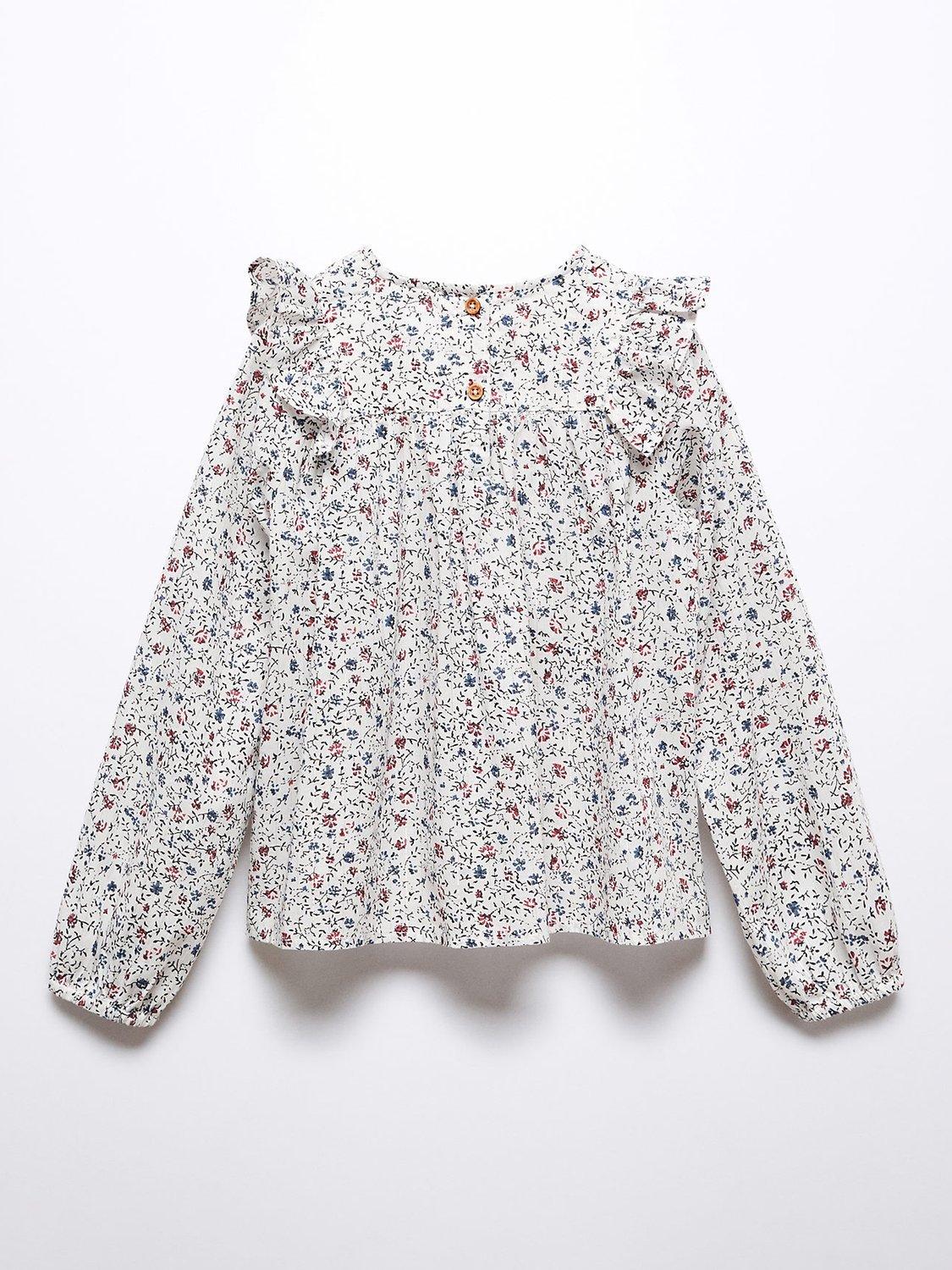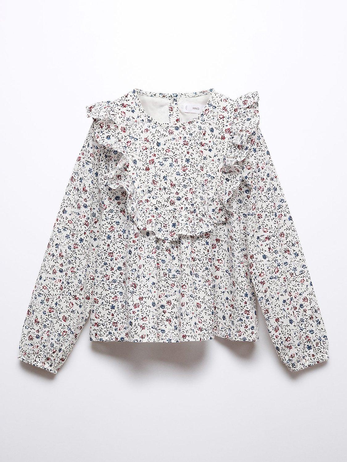 Floral print blouse in a straight design. Made from soft cotton with a round neck, long sleeves and statement ruffle detail. Button-up fastening at the back.