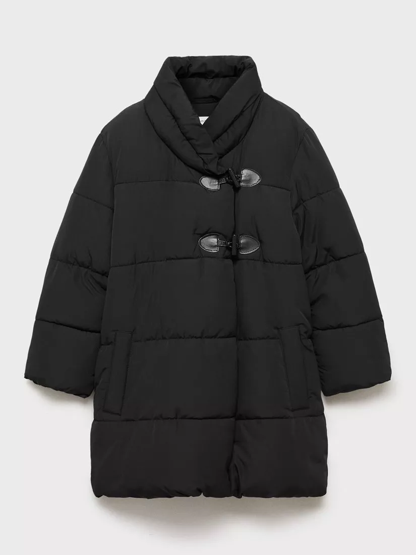 This quilted jacket is cut in a straight design, with side pockets and a zip and toggle fastening.