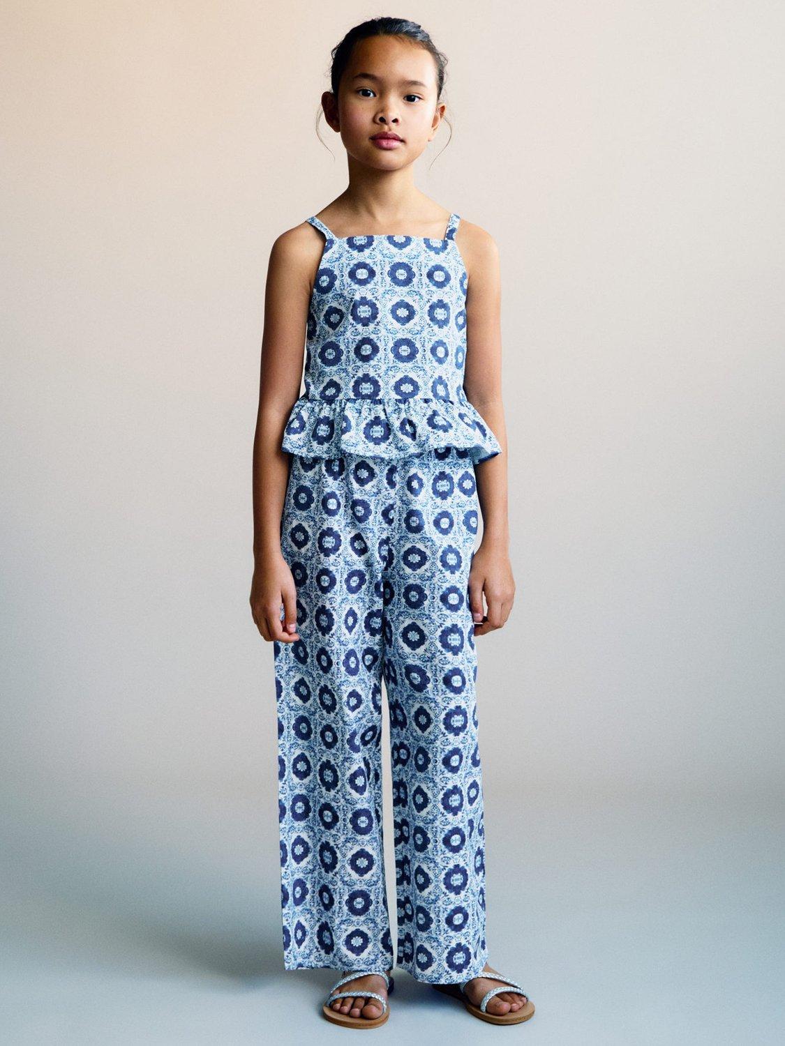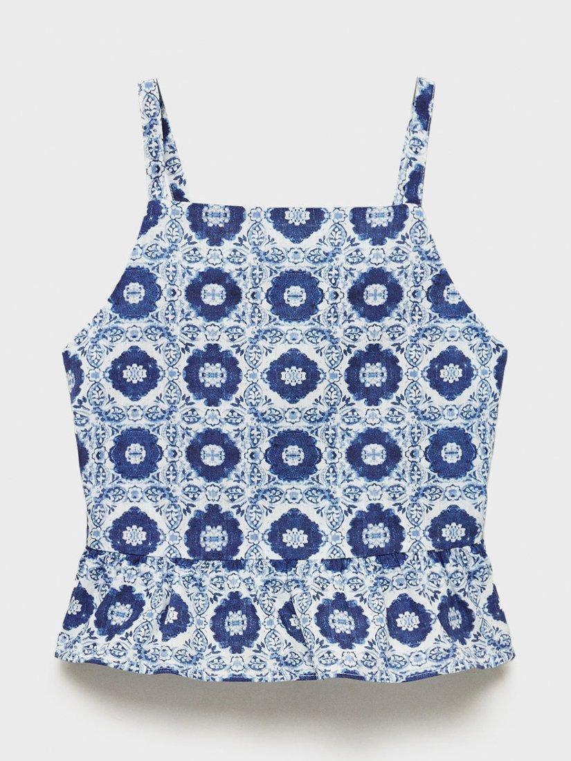 MangoKids' Maris Stamp Print Frill Hem Blouse, Medium Blue