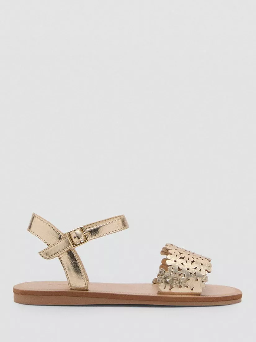 MangoKids' Metallic Flower Sandals, Gold